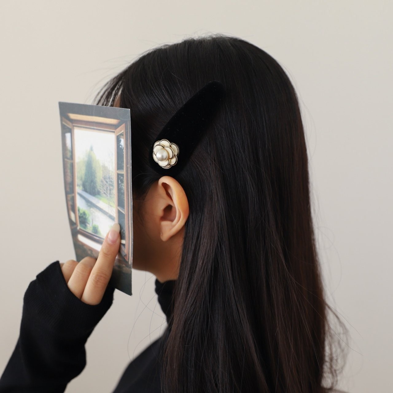 品名:H1643 벨벳 꽃 헤어핀 ◎※☞颜色:블랙, 화이트 ◎※☞尺寸:F ◎※☞材质:聚酯 0% 翻译