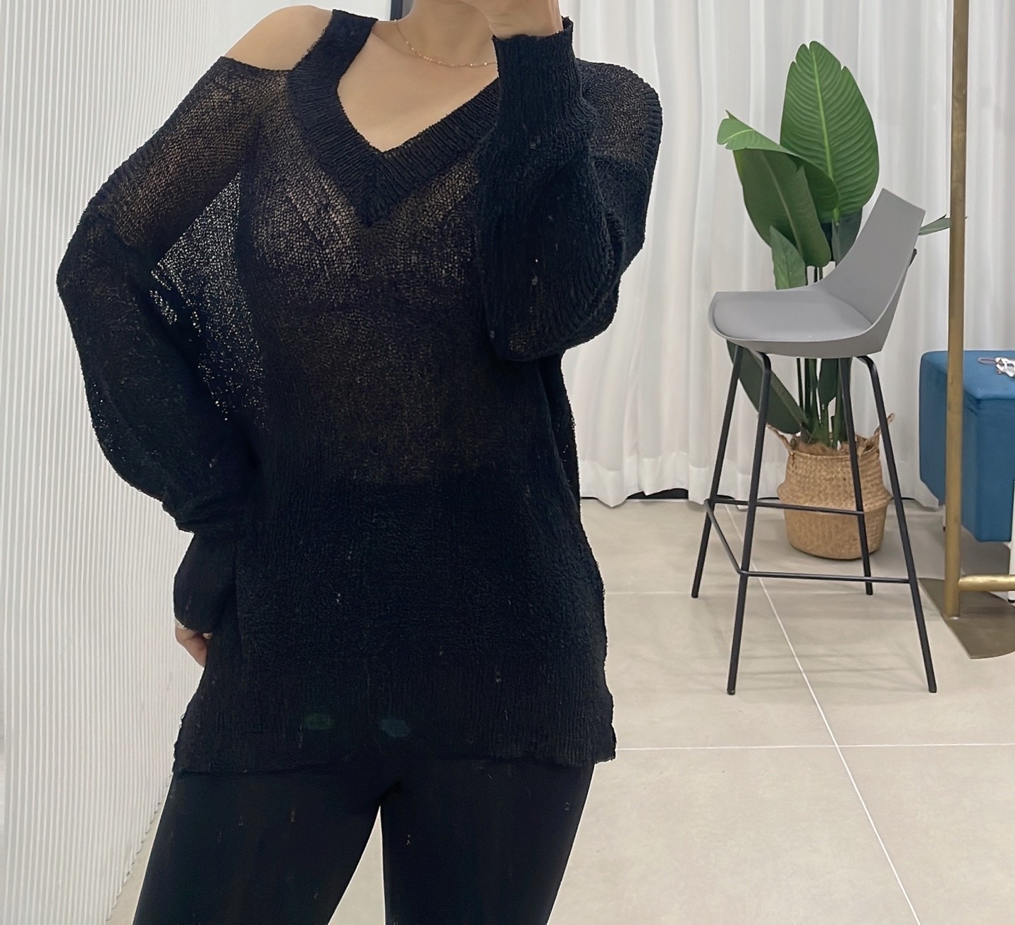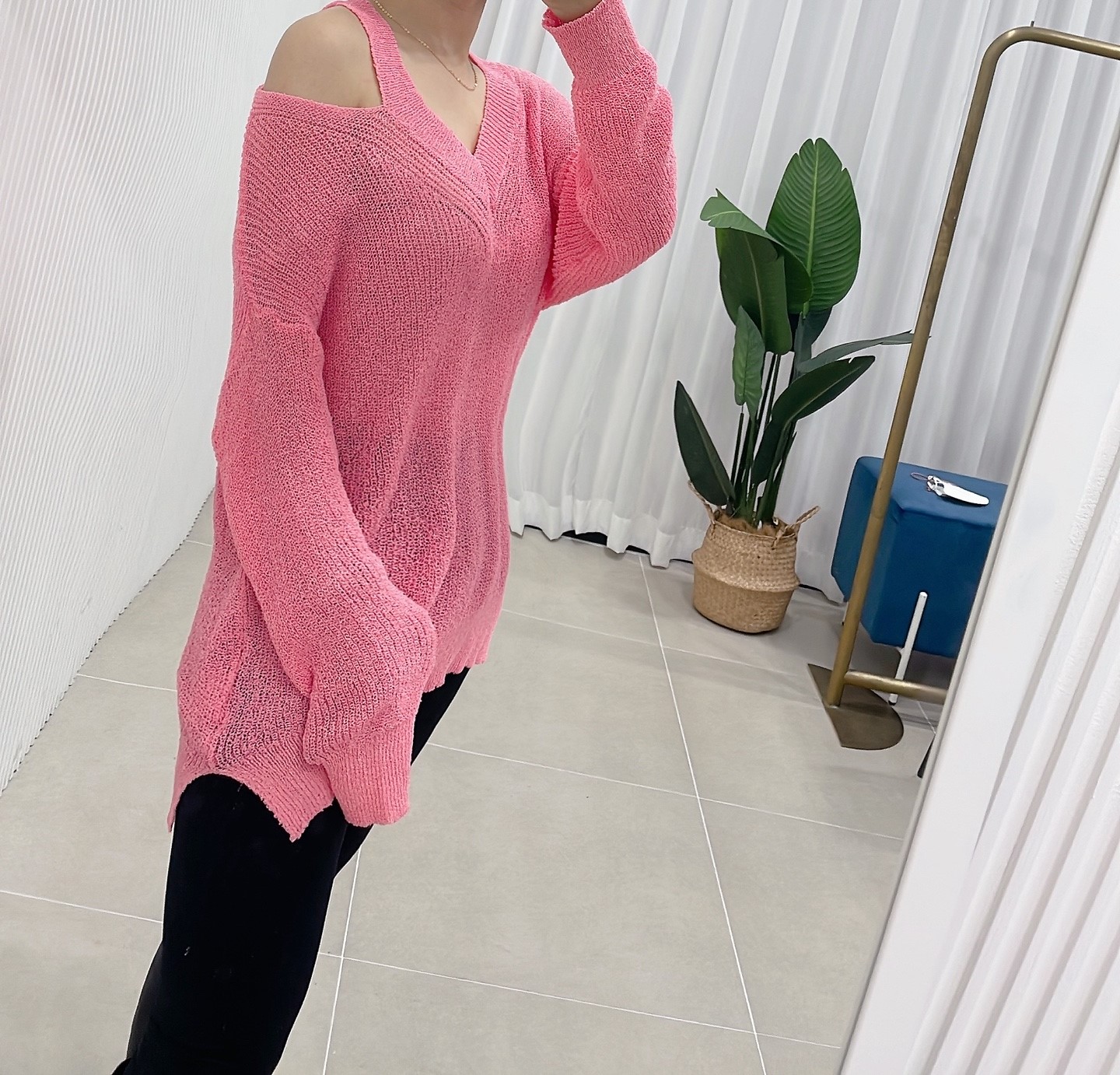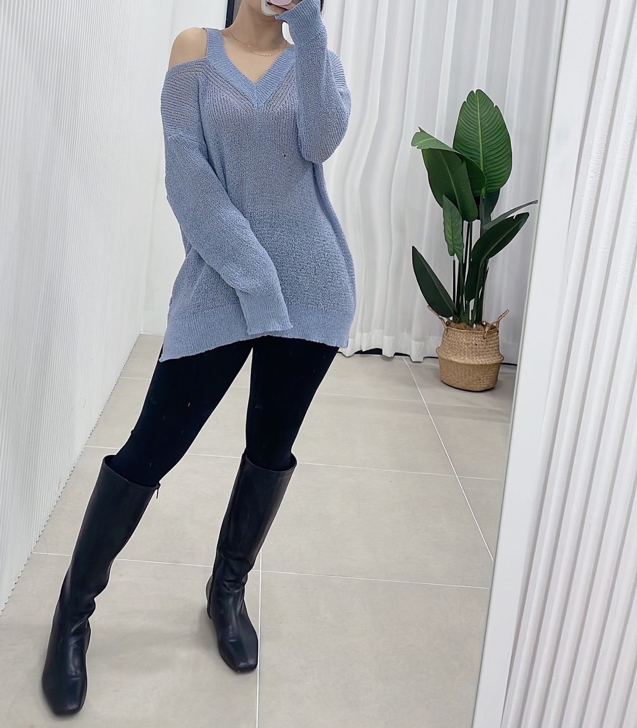 品名:언발트임브이넥니트 #여성상의캐주얼시크섹시로맨틱 ◎※☞颜色:블랙, 소라, 아이보리, 핑크 ◎※☞尺寸:FREE ◎※☞材质:聚酯 100% 翻译