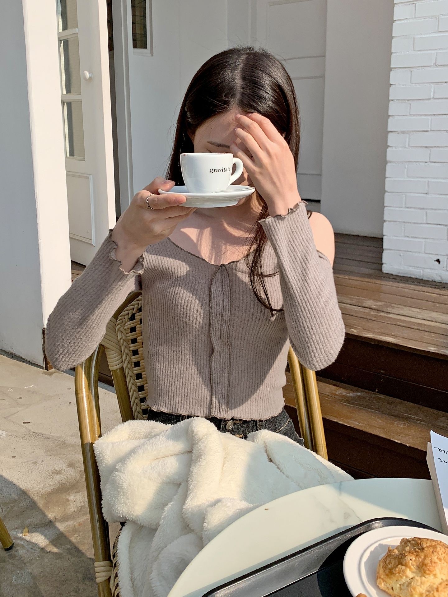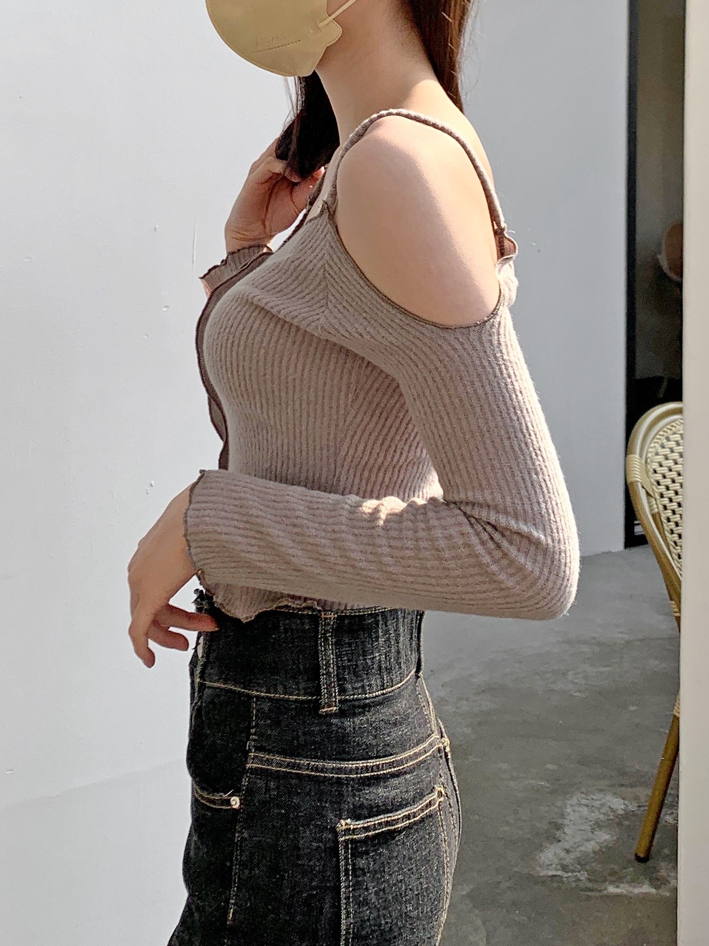 品名:트임 프릴 니트 ◎※☞颜色:브라운, 블랙, 핑크, 화이트 ◎※☞尺寸:FREE ◎※☞材质:스판 5%,聚酯 95% 翻译