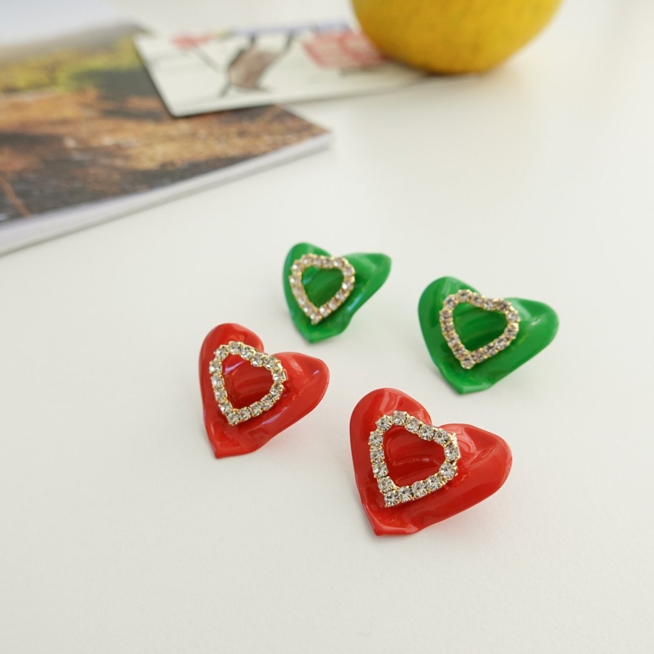 品名:E1877 하트 귀걸이 (티탄침) ◎※☞颜色:그린, 레드 ◎※☞尺寸:FREE ◎※☞材质:镀金 0% 翻译