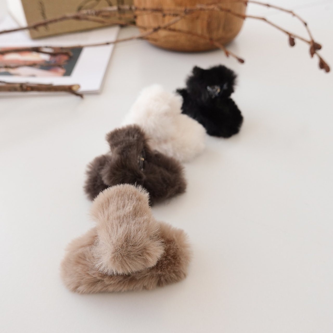品名:H1636 미니 에코퍼 집게핀 ◎※☞颜色:베이지, 브라운, 블랙, 화이트 ◎※☞尺寸:F ◎※☞材质:聚酯 0% 翻译