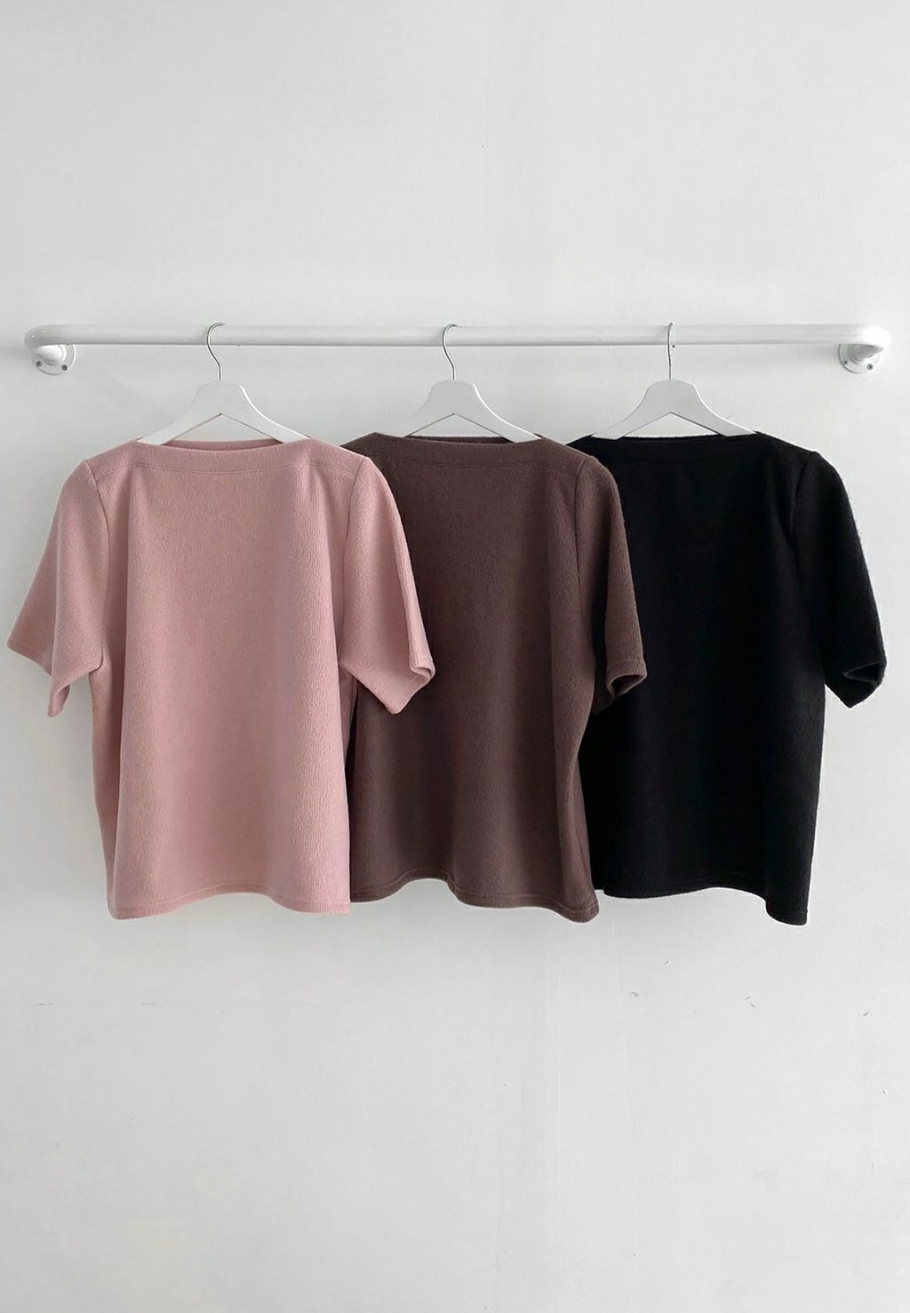 品名:简约纯色气质宽松一字领抓绒针织短袖 ◎※☞颜色:DARKBROWN, LIGHTPINK, 블랙 ◎※☞尺寸:FREE ◎※☞材质:聚酯 95%,span 5% ◎※☞注意事项:只能干洗,只能手洗,不能手洗,机洗,不能使用漂白剂,不能烘干,不能熨烫,不能曲折