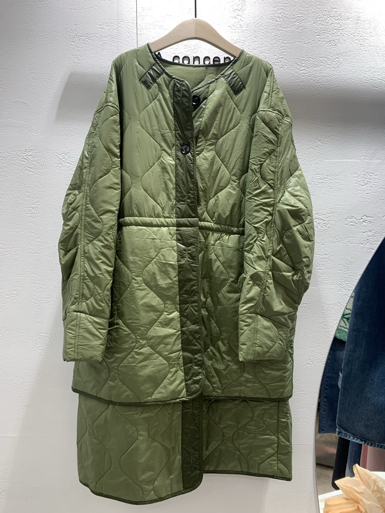 品名:플레어깔깔이코트 ◎※☞颜色:카키 ◎※☞尺寸:FREE ◎※☞材质:羽绒棉 30%,聚酯 70% ◎※☞注意事项:只能干洗,只能手洗,不能手洗,机洗,不能使用漂白剂,不能烘干,不能熨烫,不能曲折 翻译