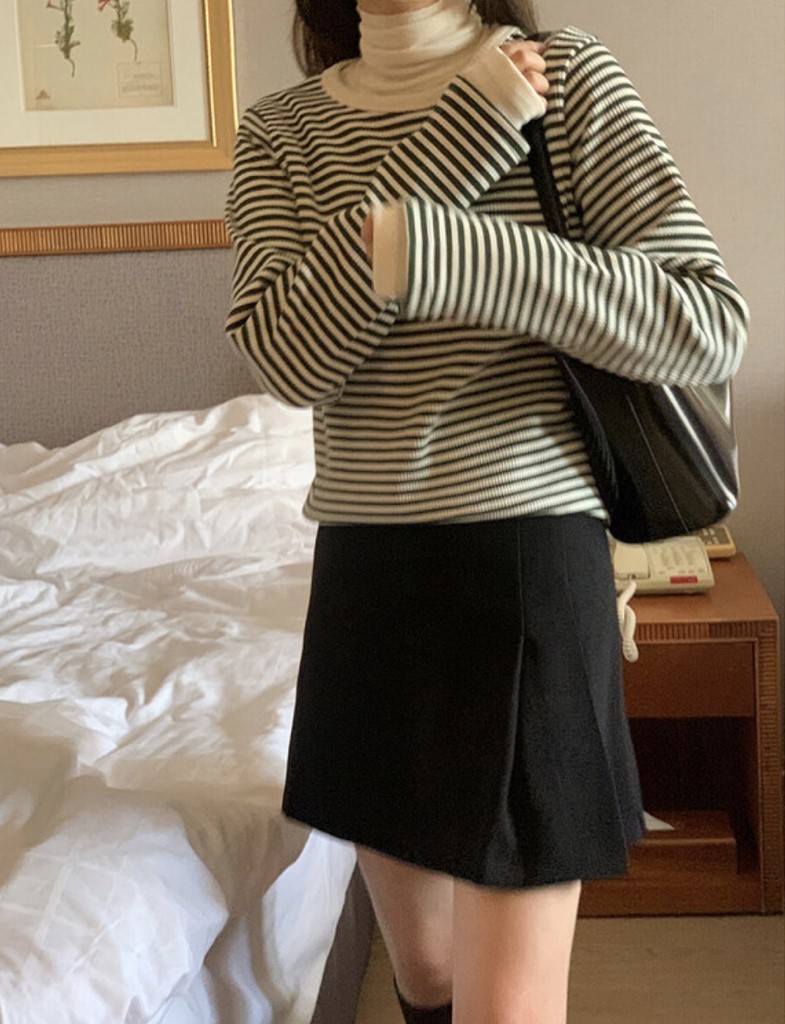 品名:단가라 삼각 골지티 /거래처 사진 ◎※☞颜色:그린, 네이비, 카멜 ◎※☞尺寸:FREE ◎※☞材质:纯棉 95%,스판 5% 翻译