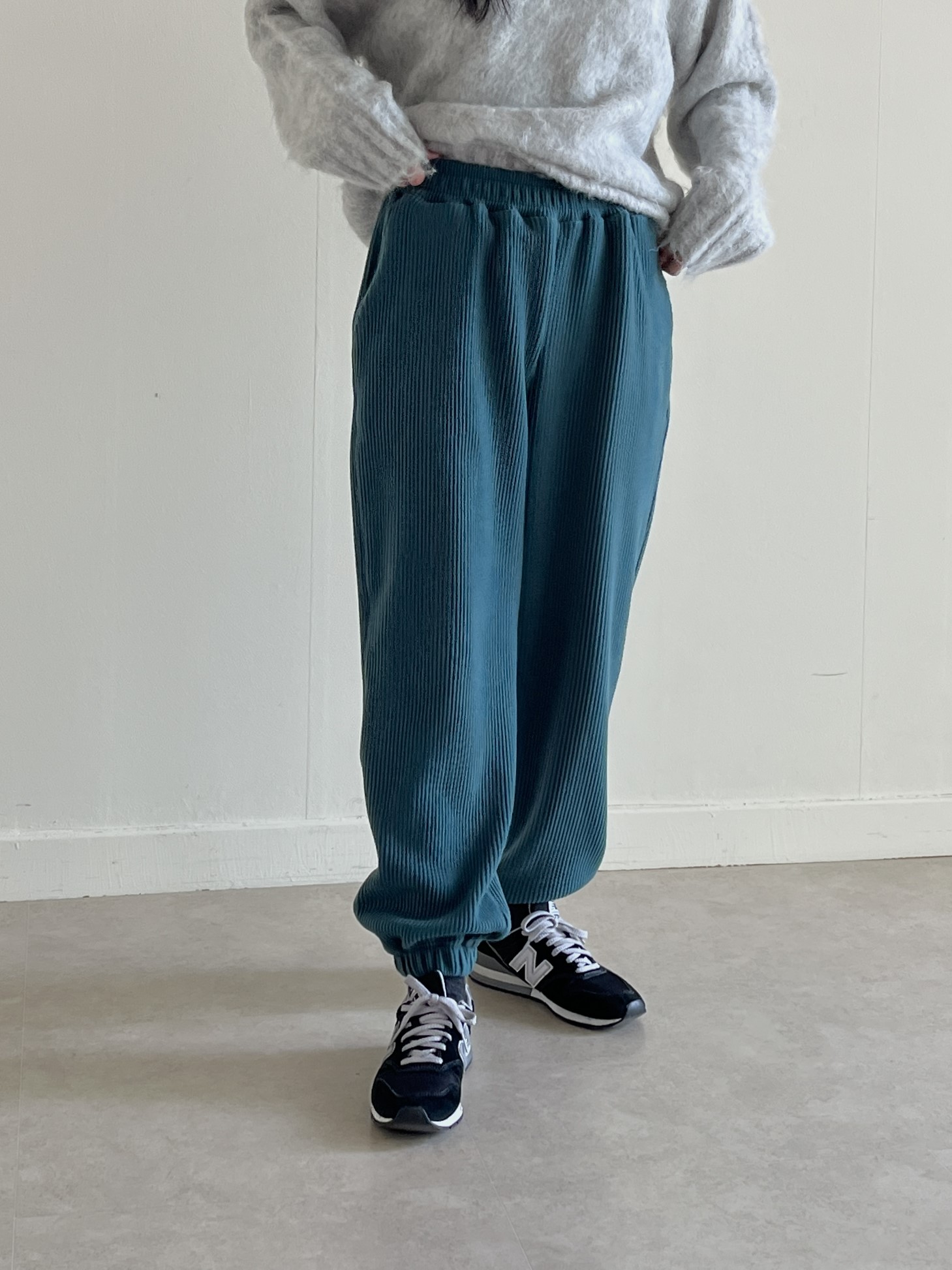 品名:골지주름조거팬츠 ◎※☞颜色:그린, 네이비, 브라운, 블랙, 아이보리 ◎※☞尺寸:FREE ◎※☞材质:聚酯 100% 翻译