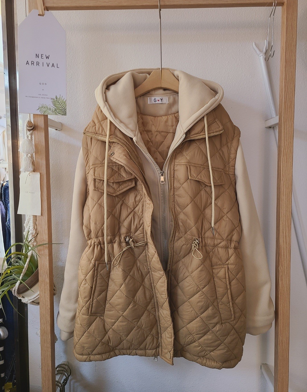 品名:이중패딩 ◎※☞颜色:베이지, 블랙 ◎※☞尺寸:FREE ◎※☞材质:腈纶 30%,聚酯 70% 翻译