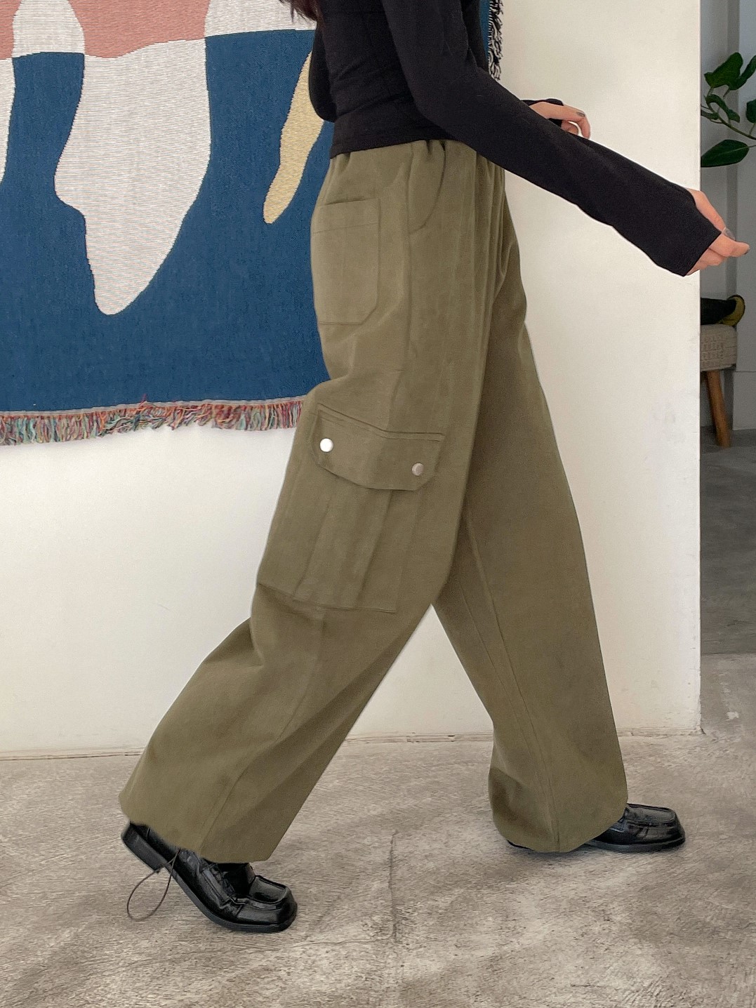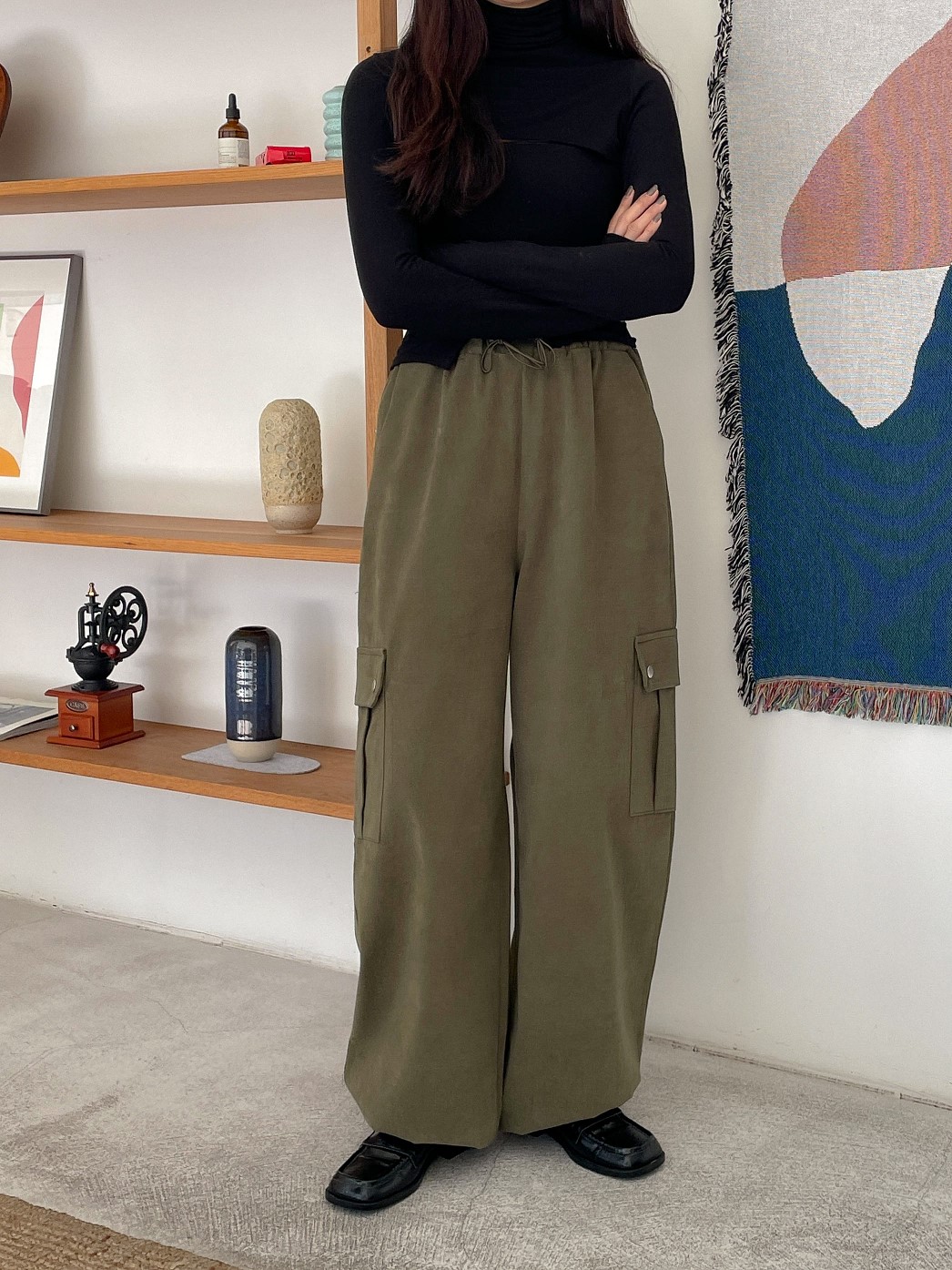 品名:피치카고PT #피치기모 #카고스트링 ◎※☞颜色:블랙, 카키 ◎※☞尺寸:FREE ◎※☞材质:纯棉 100% 翻译