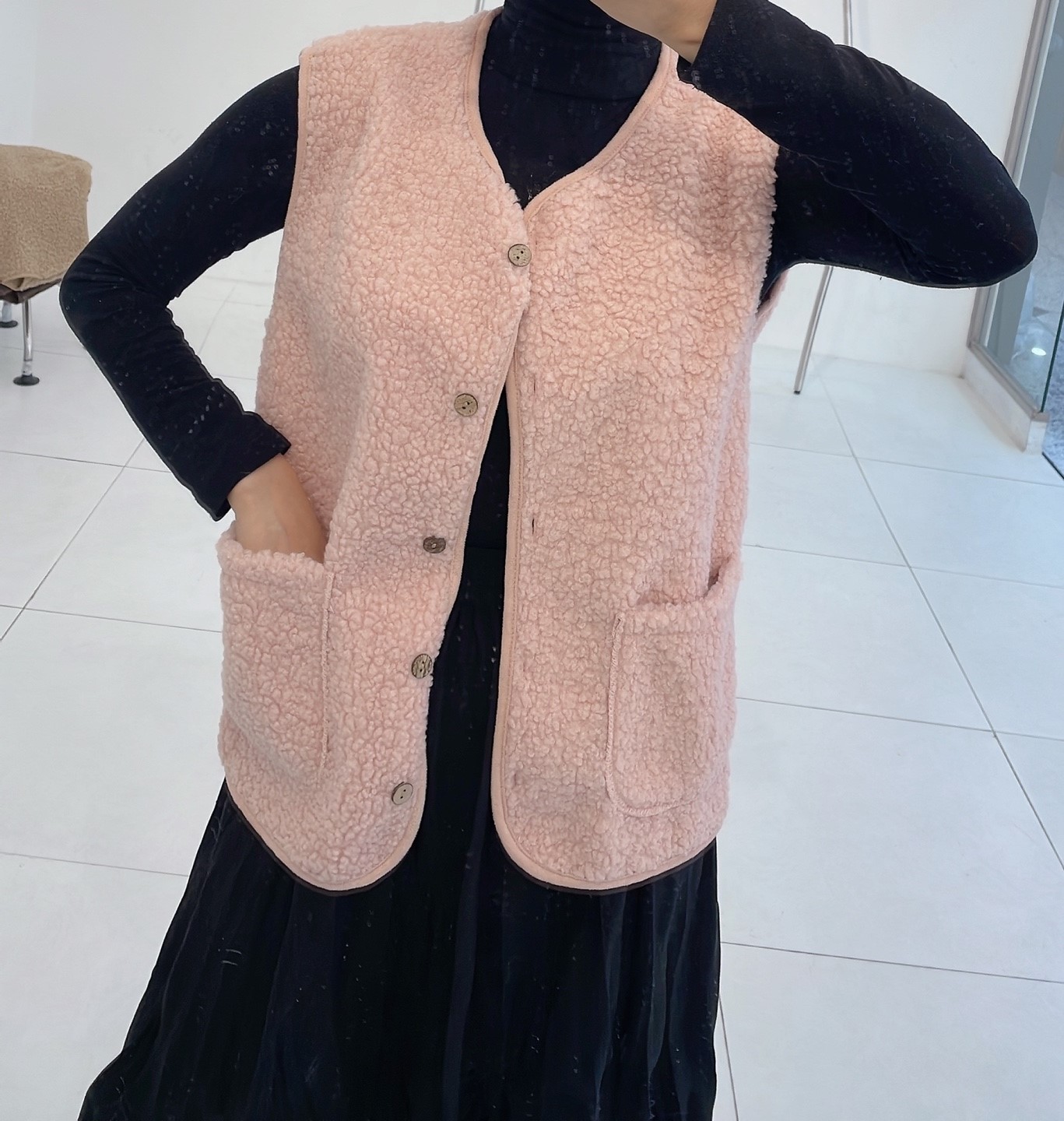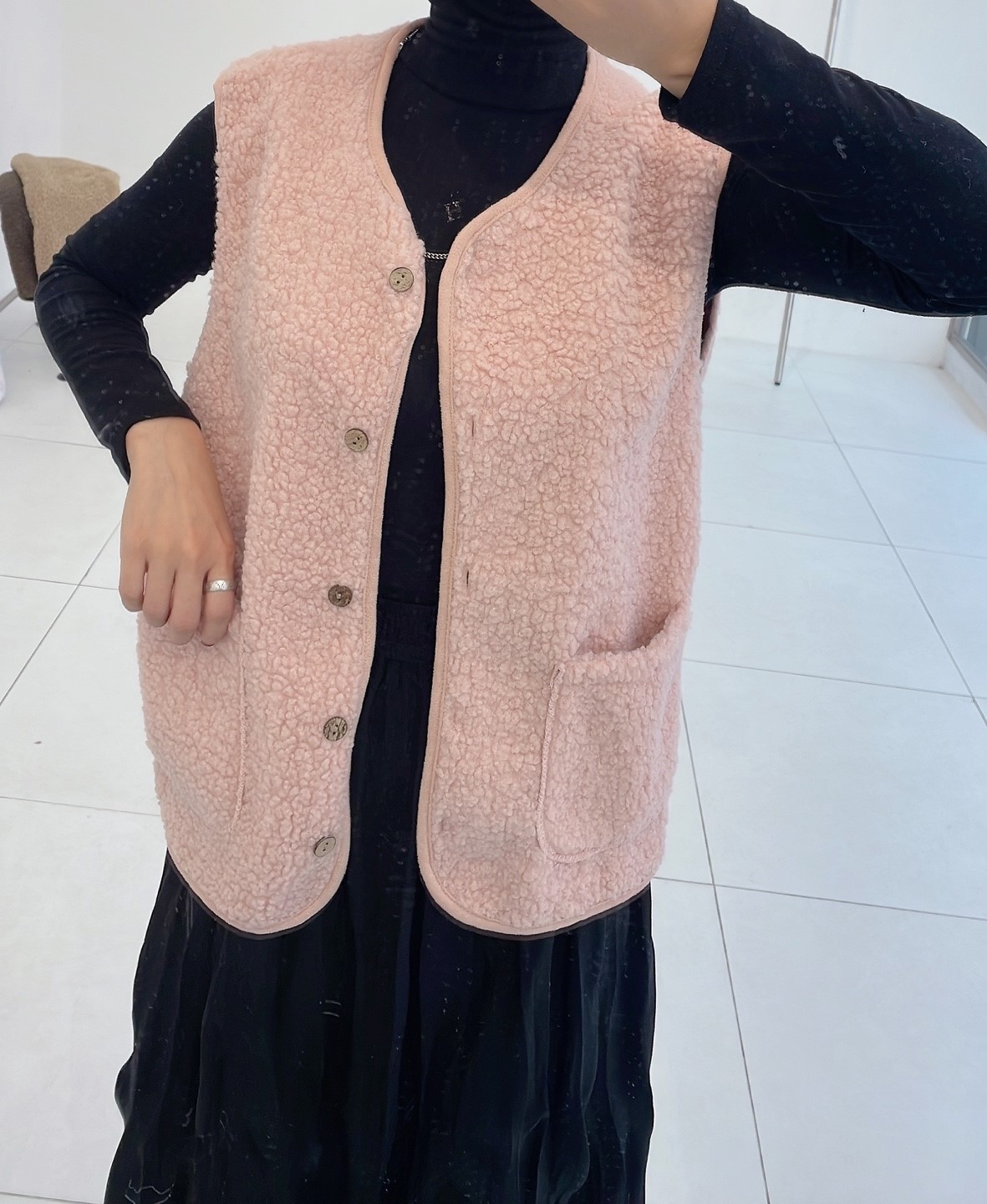 品名:뽀글베스트 #여성상의캐주얼시크섹시아우터조끼가을겨울 ◎※☞颜色:베이지, 브라운, 핑크 ◎※☞尺寸:FREE ◎※☞材质:聚酯 100% 翻译