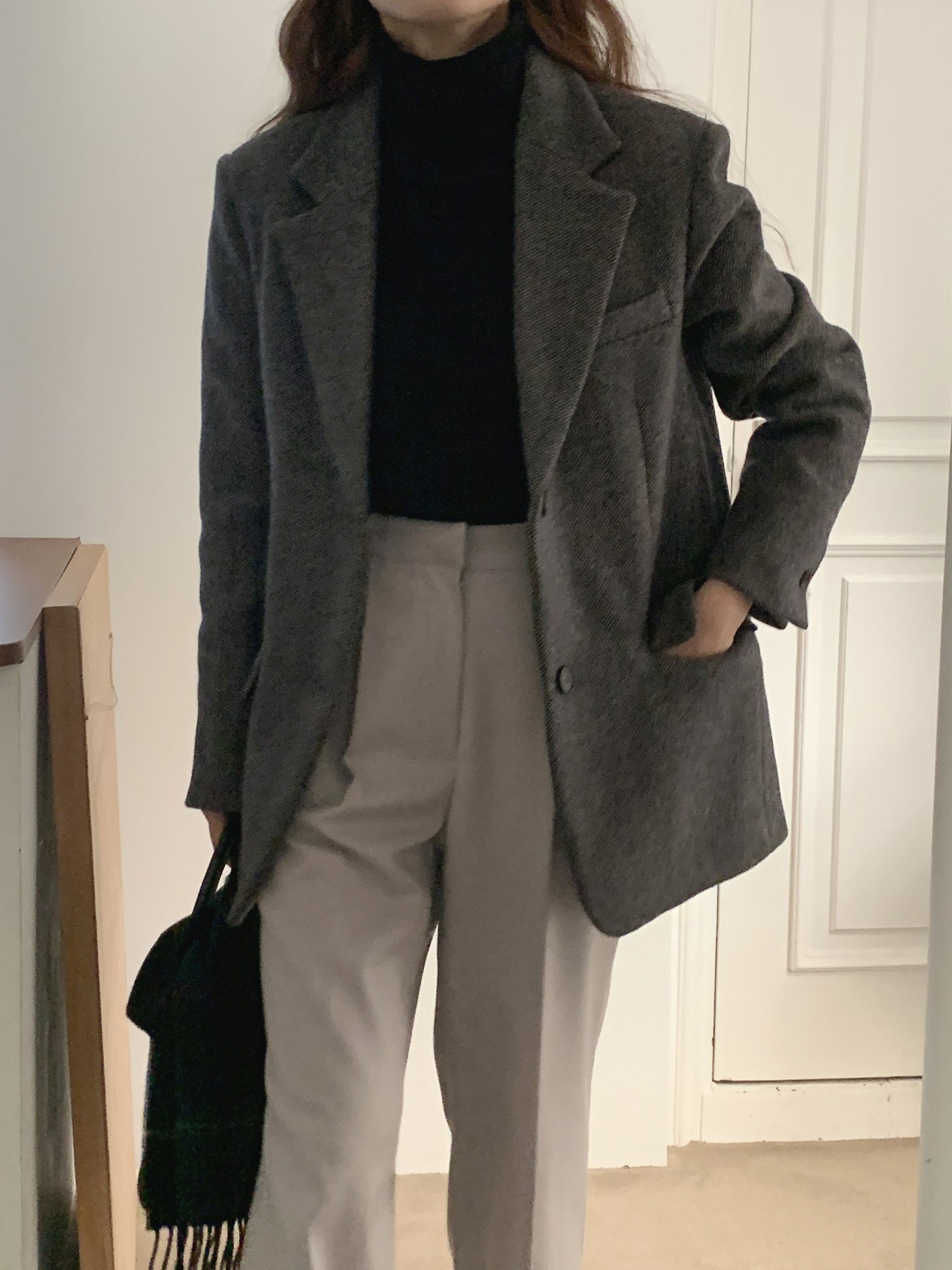 品名:울앤디자켓 ◎※☞颜色:다크그레이, 베이지, 브라운 ◎※☞尺寸:FREE ◎※☞材质:尼龙 20%,羊毛 80% ◎※☞注意事项:只能干洗,只能手洗,不能手洗,机洗,不能使用漂白剂,不能烘干,不能熨烫,不能曲折
