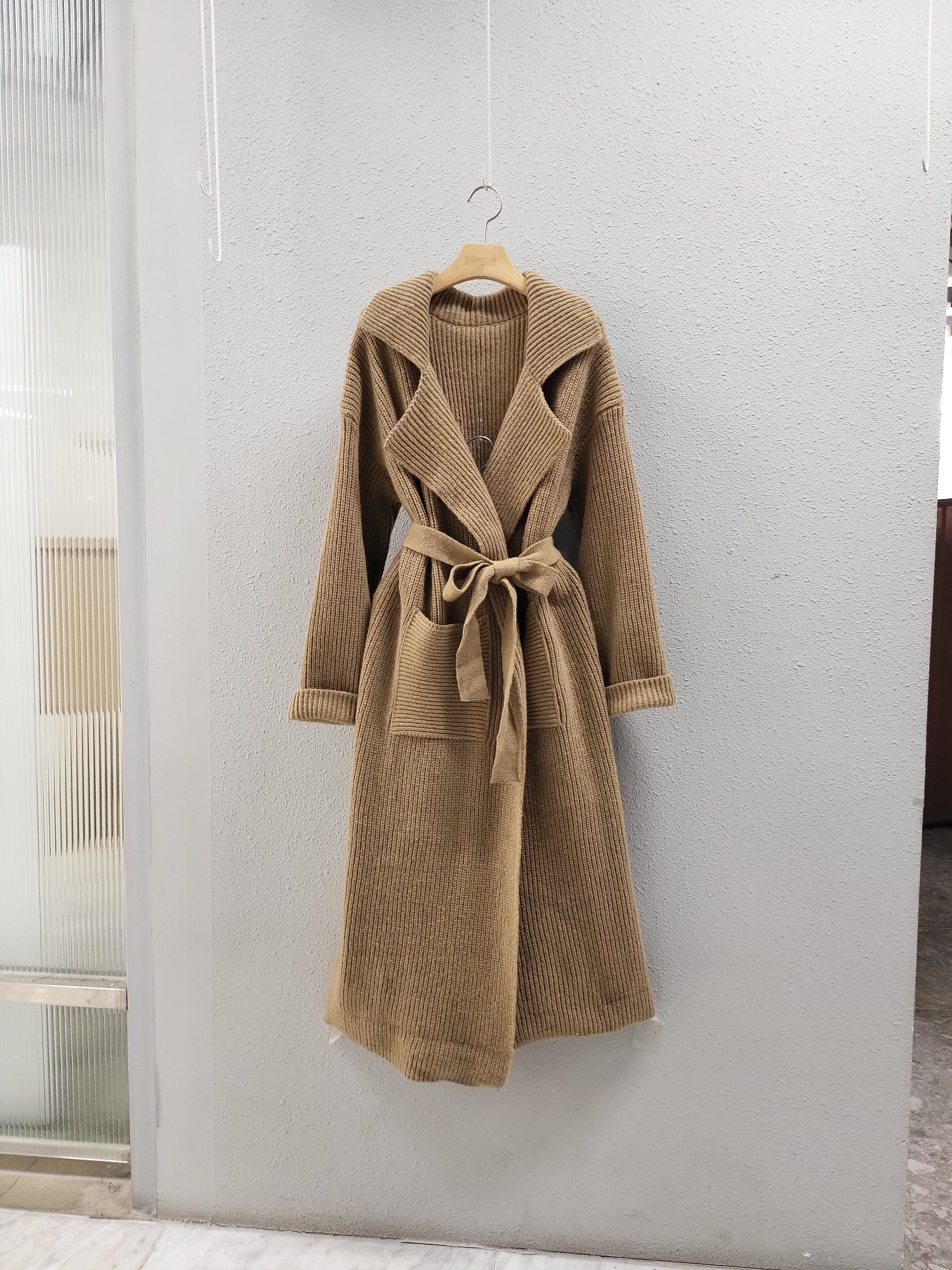 品名:카라 벨트 롱 모던 니트 코트 ◎※☞颜色:블랙, 카멜 ◎※☞尺寸:FREE ◎※☞材质:腈纶 50%,聚酯 50% 翻译
