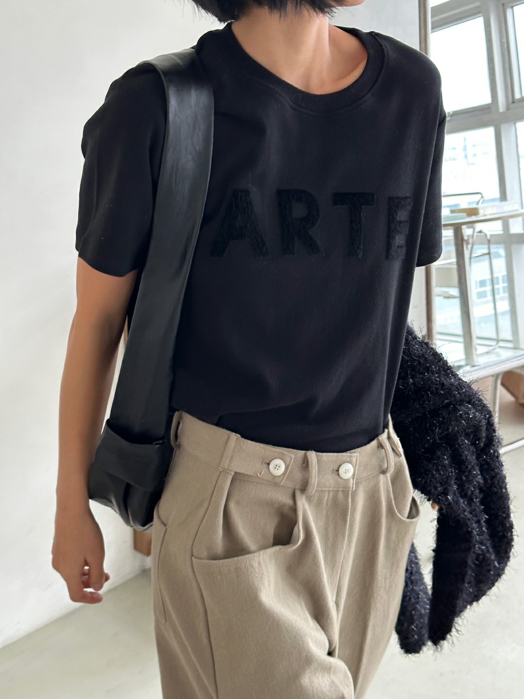 品名:아르테송치 티 ◎※☞颜色:검정, 아이, 회색 ◎※☞尺寸:FREE ◎※☞材质:스판 5%,纯棉 95% 翻译