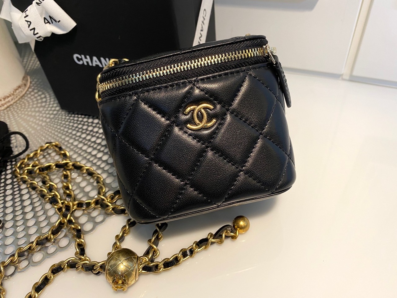 品名:샤) 골드볼 베니티 바배 ◎※☞颜色:블랙 ◎※☞尺寸:F ◎※☞材质:天然皮革 0% 翻译