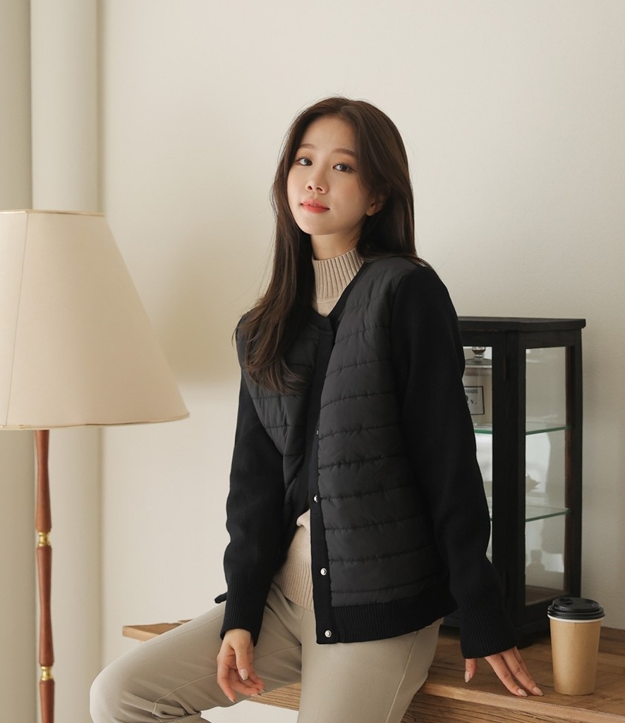 品名:니트패딩 ◎※☞颜色:베이지, 블랙 ◎※☞尺寸:FREE ◎※☞材质:聚酯 100% 翻译