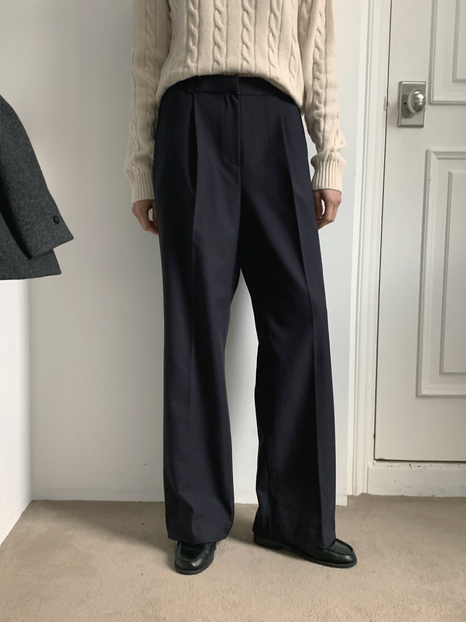 品名:(속기모)울가넷슬랙스 ◎※☞颜色:네이비, 블랙, 차콜 ◎※☞尺寸:FREE ◎※☞材质:聚酯 90%,羊毛 10% ◎※☞注意事项:只能干洗,只能手洗,不能手洗,机洗,不能使用漂白剂,不能烘干,不能熨烫,不能曲折