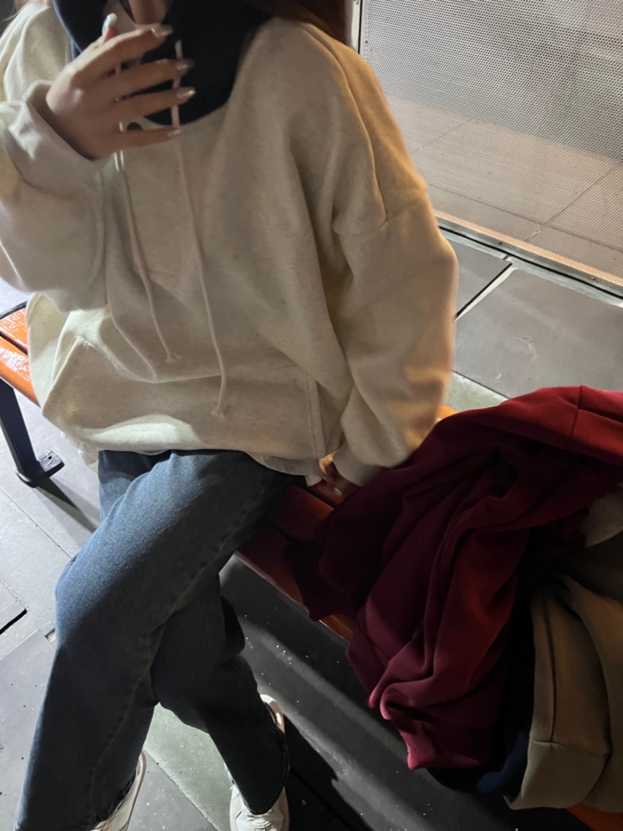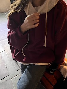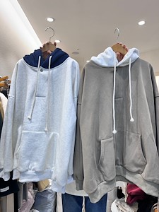 배색 기모후드맨투맨
