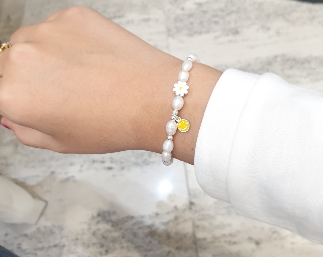 品名:은제품---스마일 꽃 진주팔찌