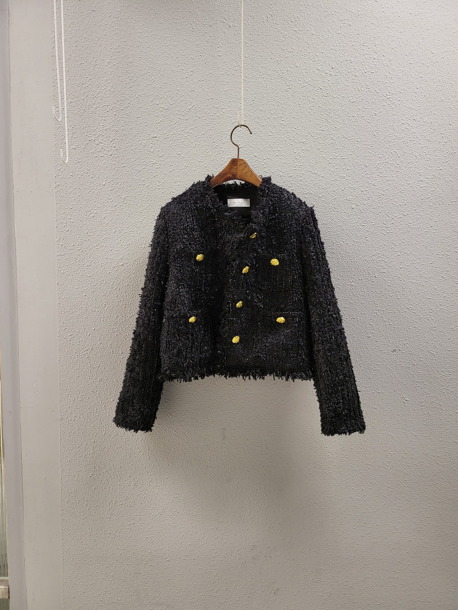 品名:러블리 트위드 자켓 ◎※☞颜色:블랙, 아이보리 ◎※☞尺寸:FREE ◎※☞材质:腈纶 50%,聚酯 50% ◎※☞注意事项:只能干洗,只能手洗,不能手洗,机洗,不能使用漂白剂,不能烘干,不能熨烫,不能曲折