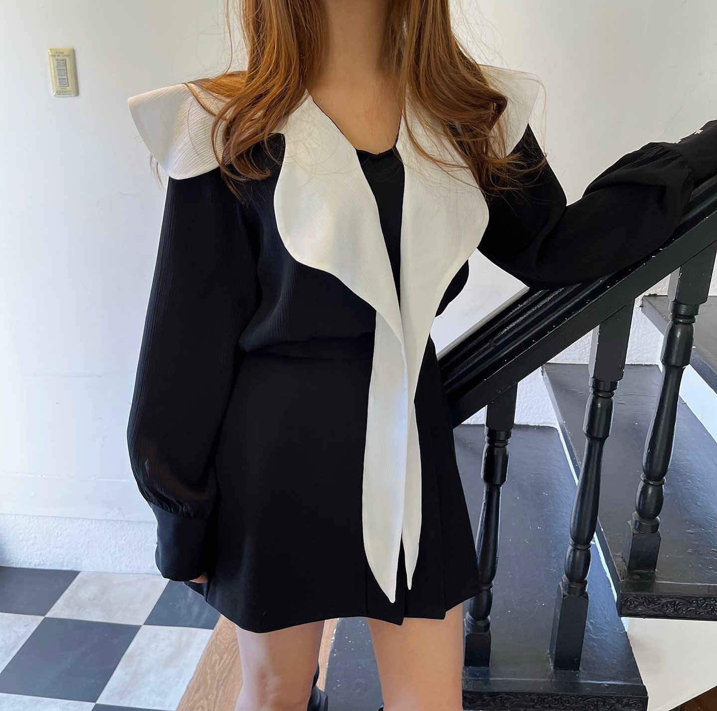 品名:가든리본블라우스 ◎※☞颜色:블랙, 화이트 ◎※☞尺寸:FREE ◎※☞材质:聚酯 100% 翻译