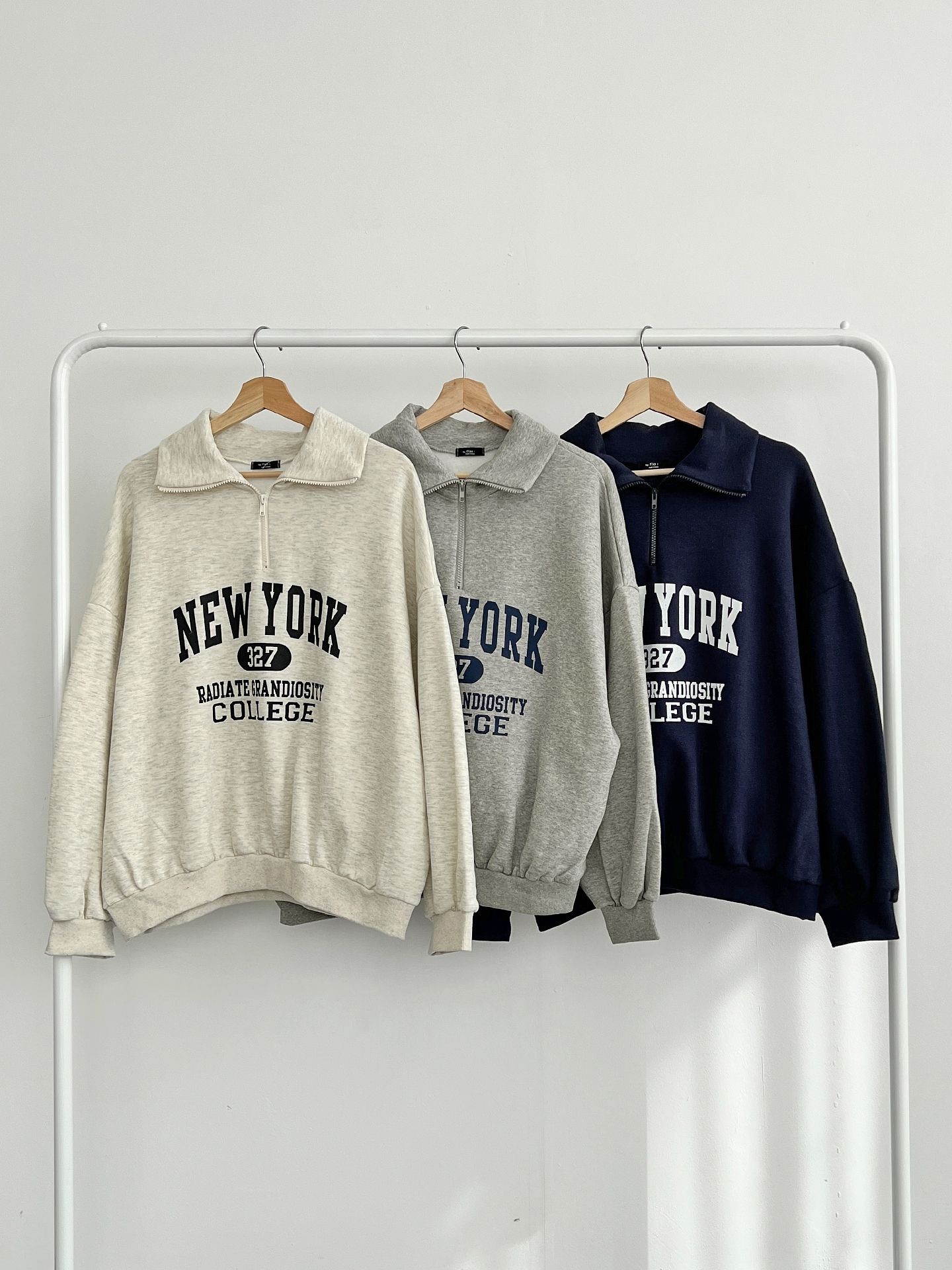品名:뉴욕 반집업 ◎※☞颜色:그레이, 네이비 ◎※☞尺寸:FREE ◎※☞材质:纯棉 80%,聚酯 20% 翻译