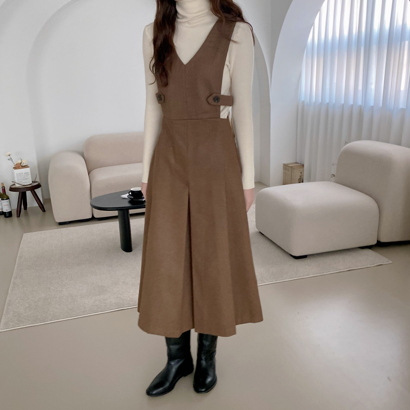品名:에센원피스 ◎※☞颜色:브라운, 차콜 ◎※☞尺寸:FREE ◎※☞材质:聚酯 95%,羊毛 5% 翻译