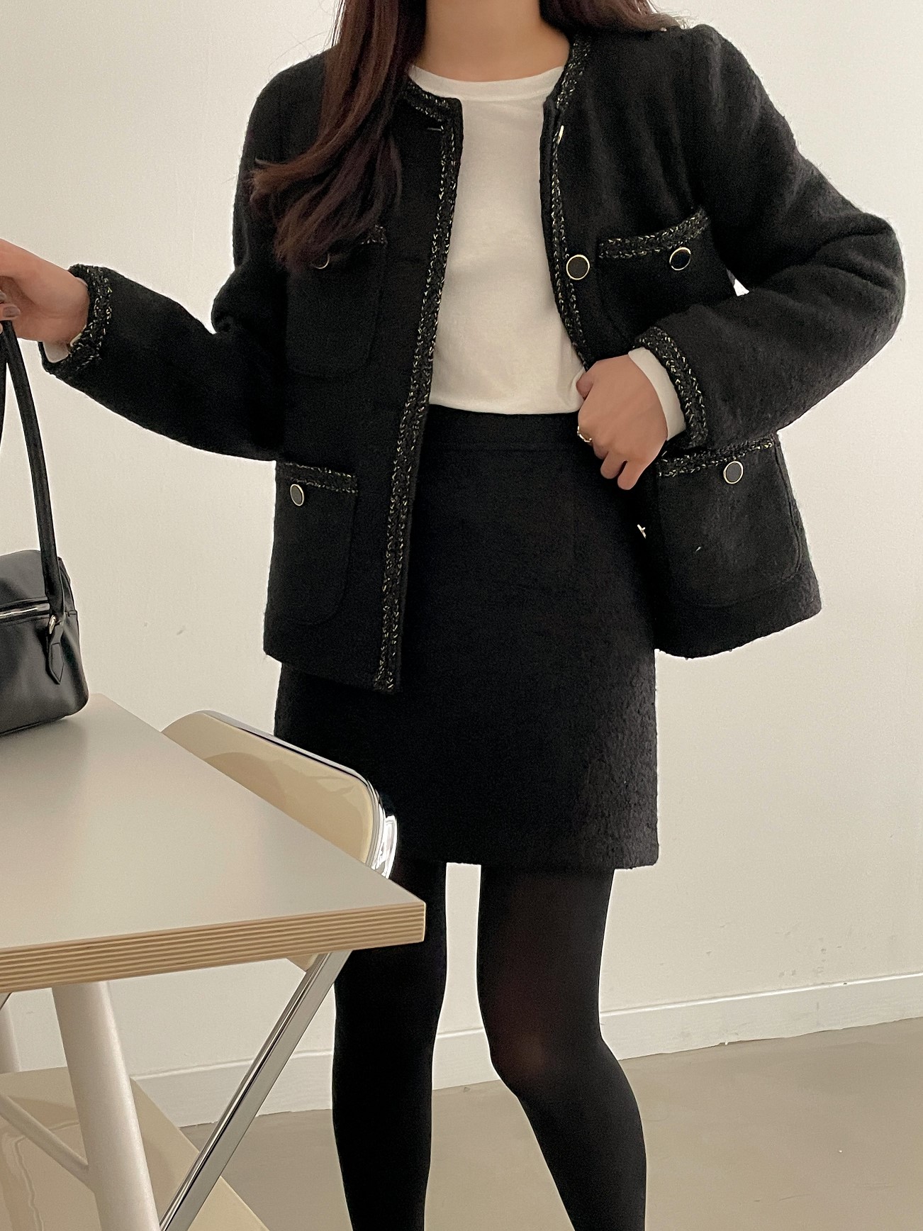 品名:밍크SK #트위드스커트 #미니스커트 #연말 ◎※☞颜色:블랙, 아이보리 ◎※☞尺寸:M, S ◎※☞材质:聚酯 60%,羊毛 40% 翻译