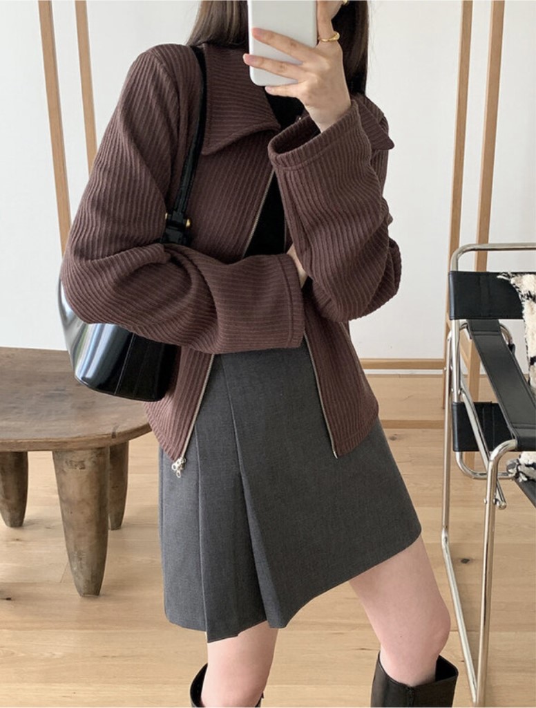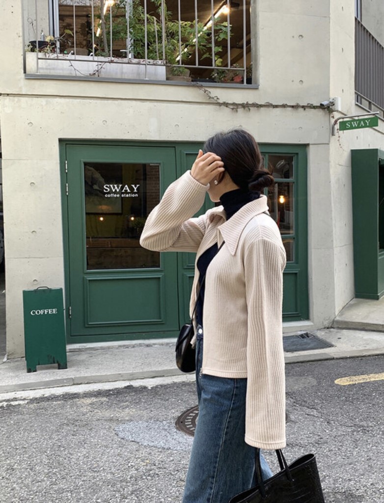 品名:투웨이 니트 카라 집업 /거래처 사진 ◎※☞颜色:브라운, 블루, 오트, 올리브 ◎※☞尺寸:FREE ◎※☞材质:聚酯 95%,스판 5% 翻译