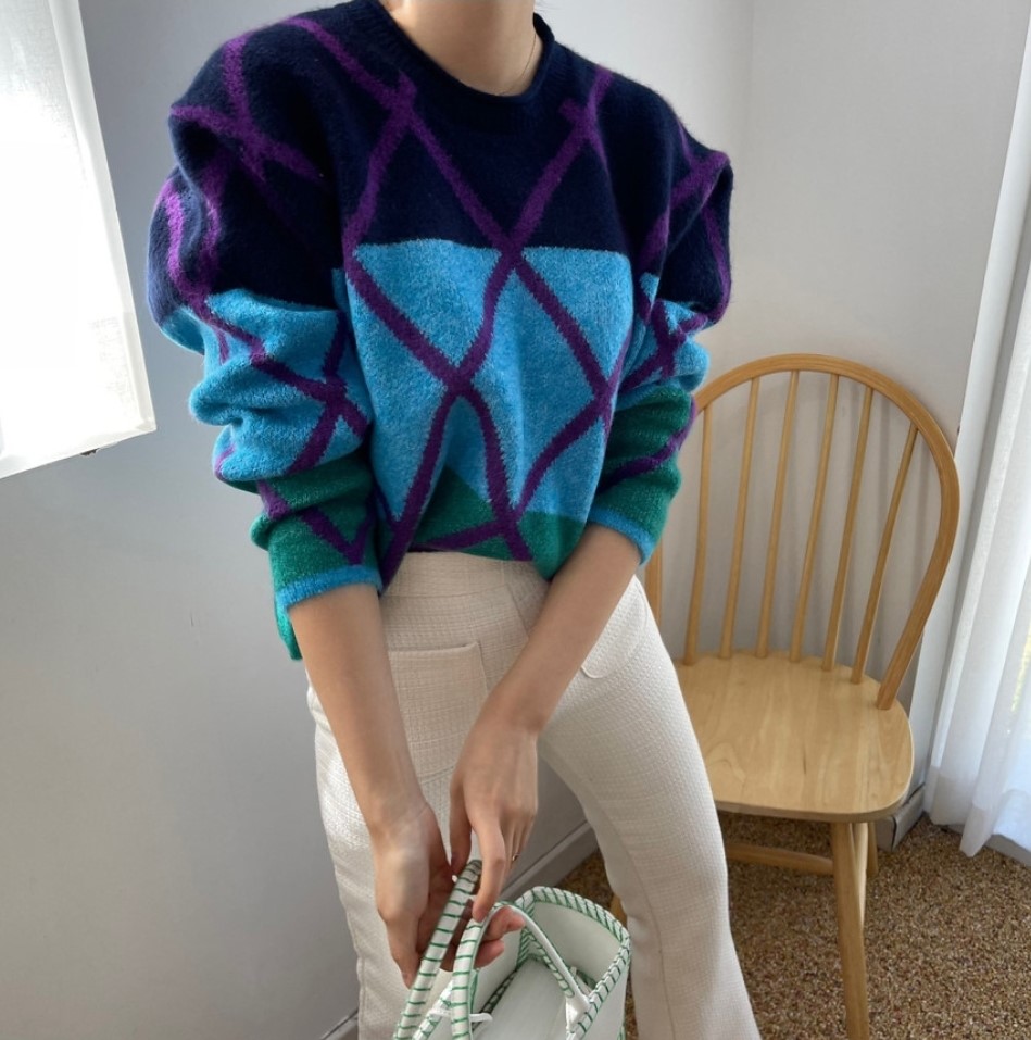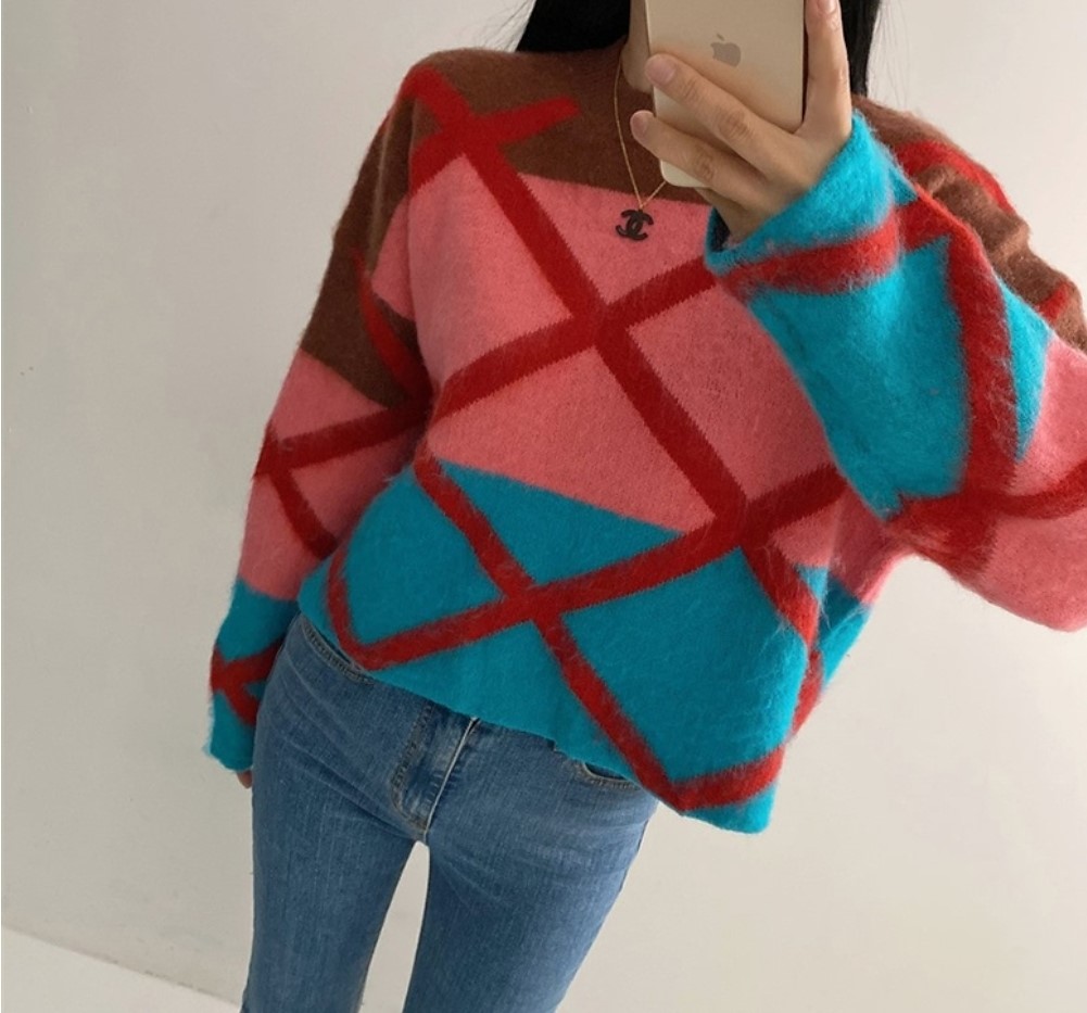 品名:단가라 배색니트 ◎※☞颜色:블루, 핑크 ◎※☞尺寸:FREE ◎※☞材质:聚酯 38%,비스코스 52%,羊毛 10% ◎※☞注意事项:只能干洗,只能手洗,不能手洗,机洗,不能使用漂白剂,不能烘干,不能熨烫,不能曲折