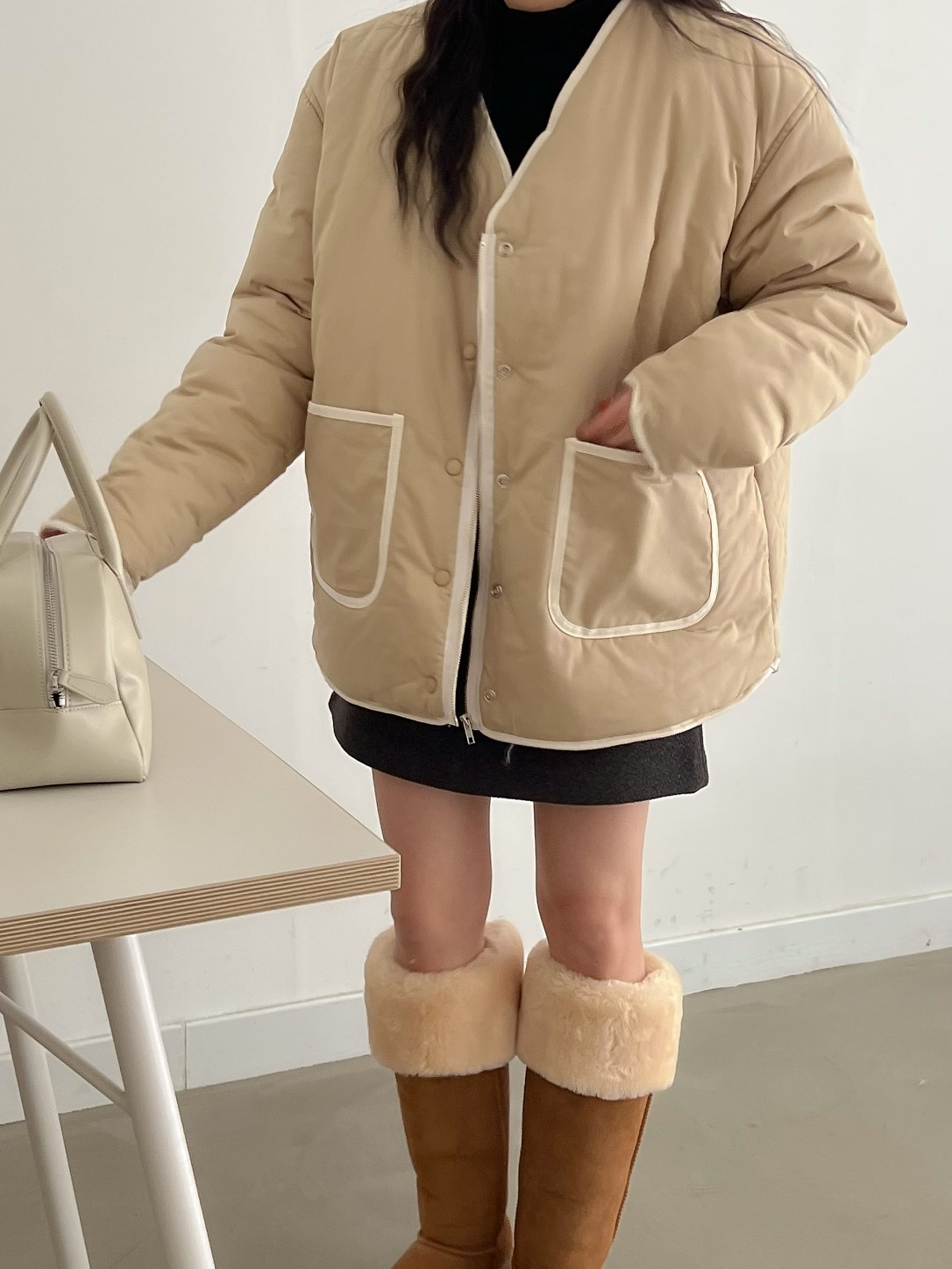 品名:바인딩패딩JP ◎※☞颜色:네이비, 베이지 ◎※☞尺寸:FREE ◎※☞材质:纯棉 100% 翻译