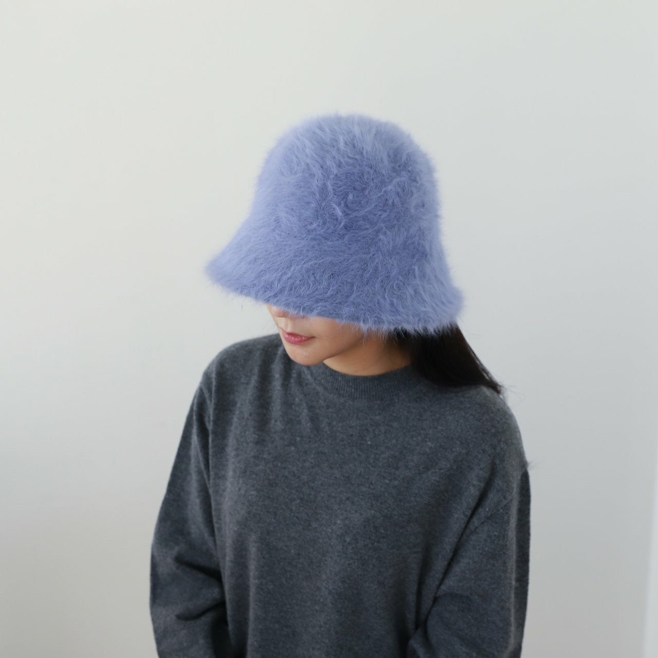 品名:BH1016 앙고라 버킷햇 ◎※☞颜色:베이지, 블랙, 블루, 아이보리, 핑크 ◎※☞尺寸:F ◎※☞材质:聚酯 80%,马海毛 20% 翻译