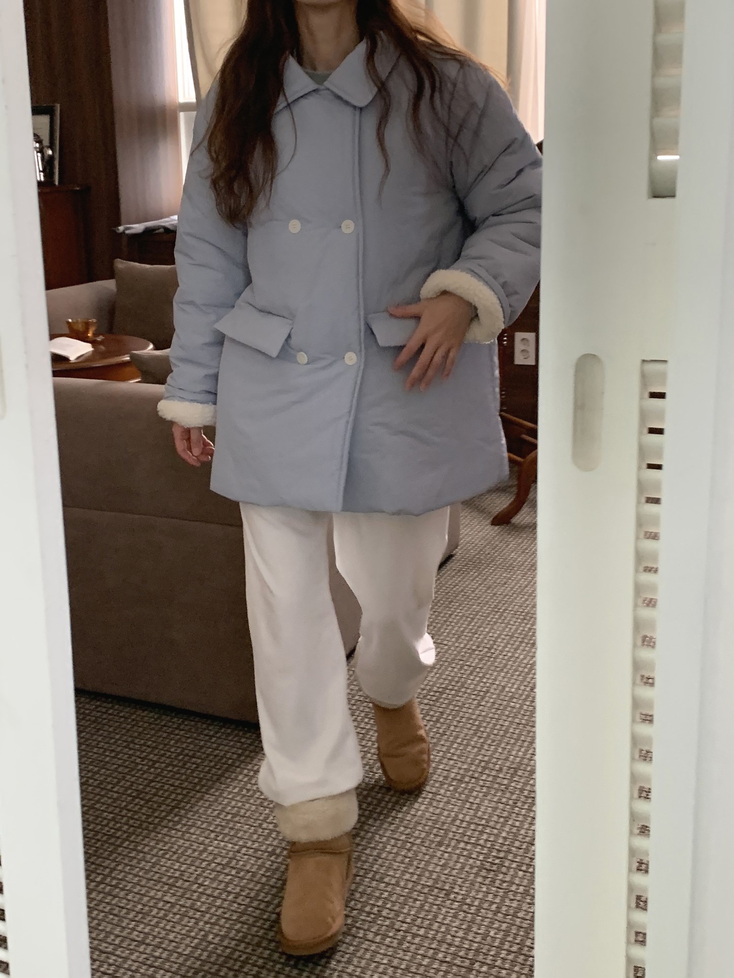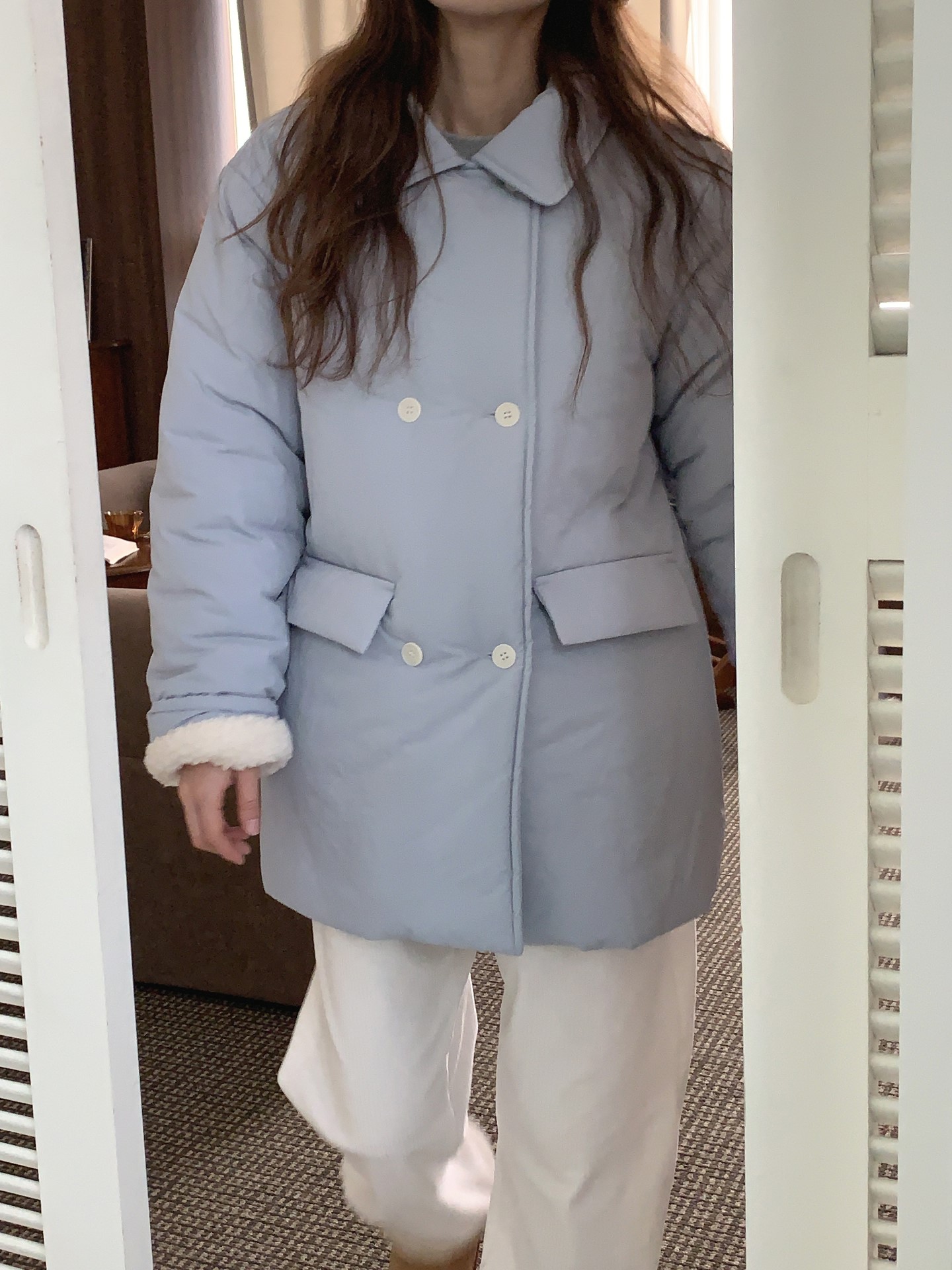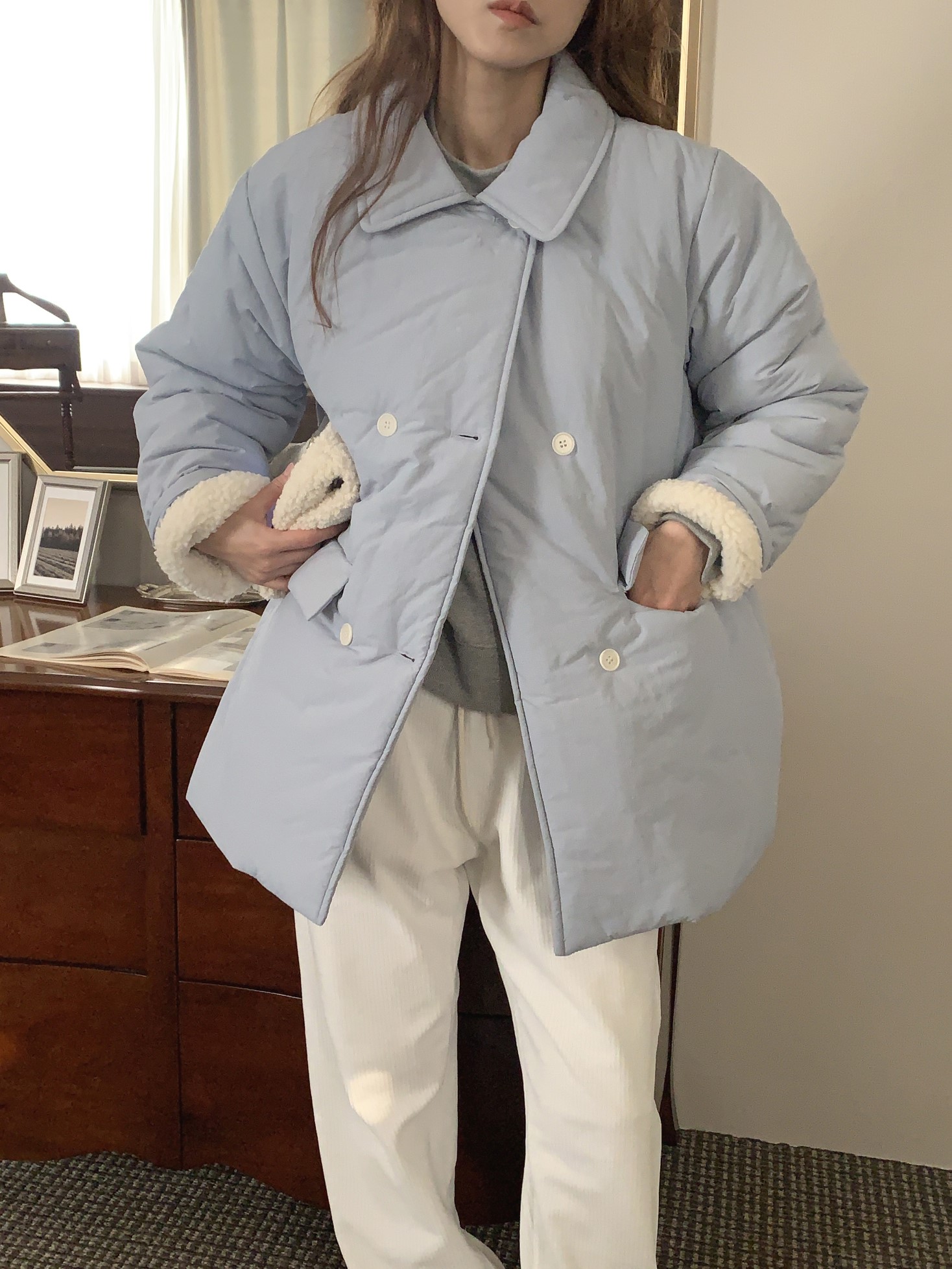 品名:더블하프패딩 ◎※☞颜色:네이비, 소라, 아이보리 ◎※☞尺寸:FREE ◎※☞材质:尼龙 80%,纯棉 20% ◎※☞注意事项:只能干洗,只能手洗,不能手洗,机洗,不能使用漂白剂,不能烘干,不能熨烫,不能曲折 翻译