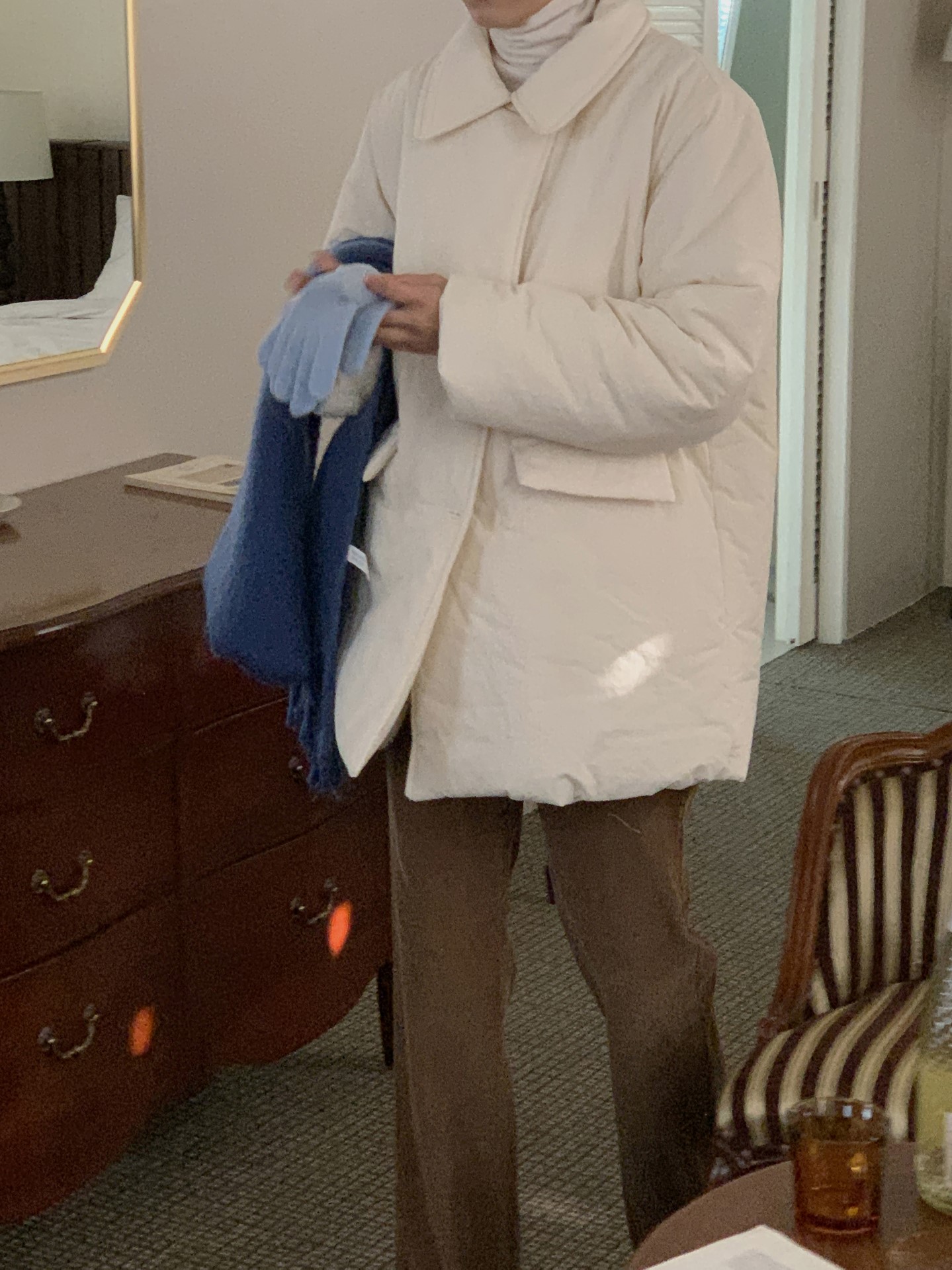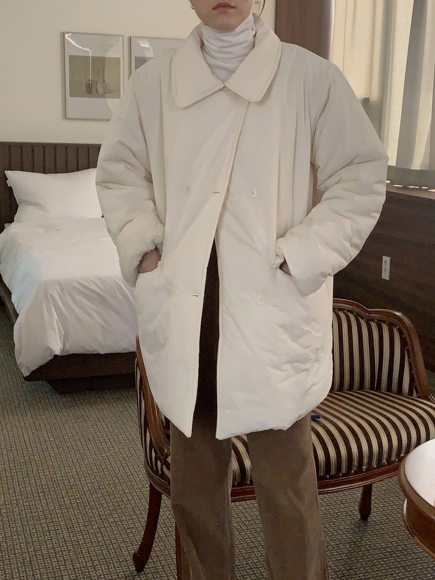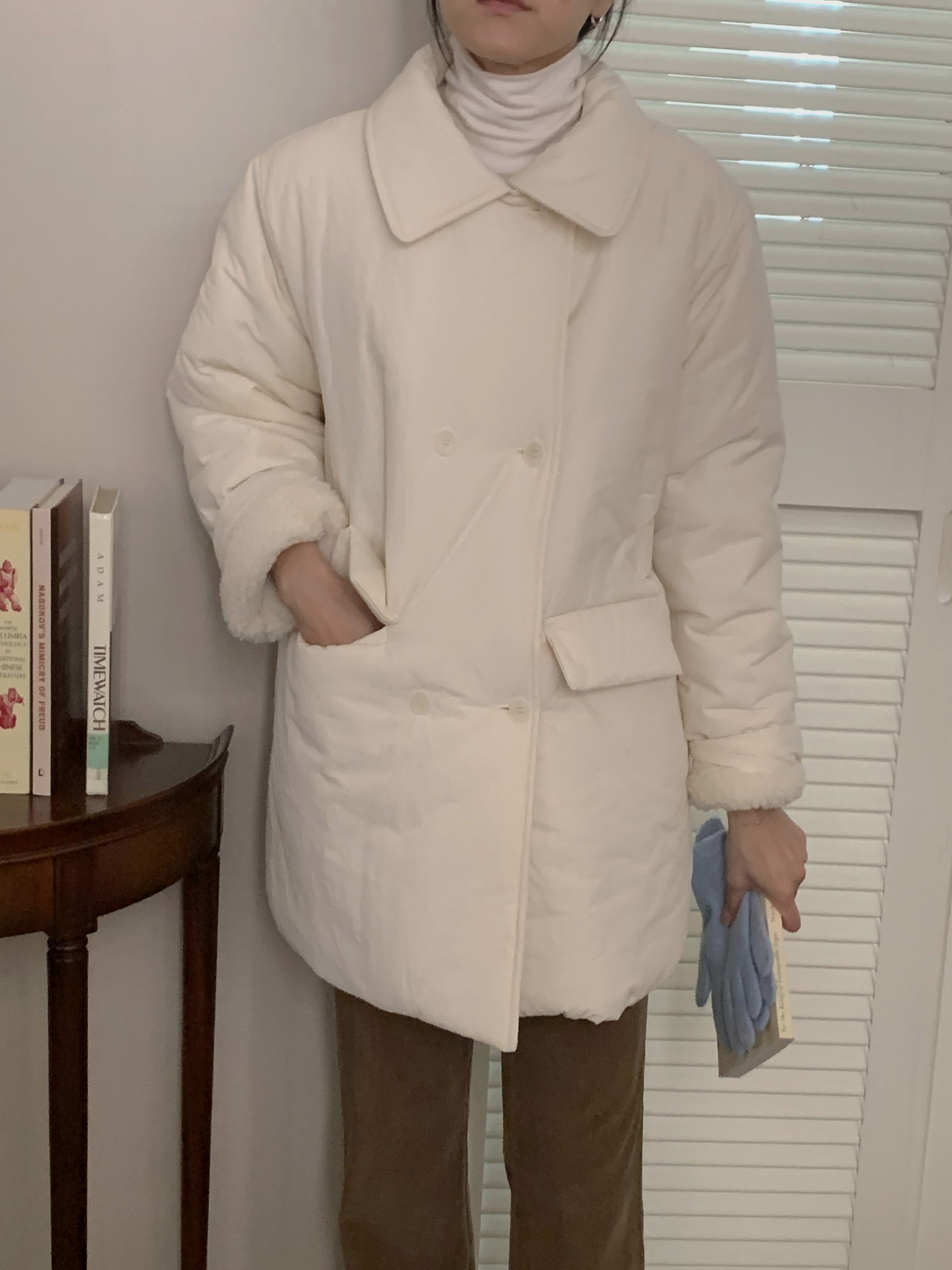 品名:더블하프패딩 ◎※☞颜色:네이비, 소라, 아이보리 ◎※☞尺寸:FREE ◎※☞材质:尼龙 80%,纯棉 20% ◎※☞注意事项:只能干洗,只能手洗,不能手洗,机洗,不能使用漂白剂,不能烘干,不能熨烫,不能曲折 翻译