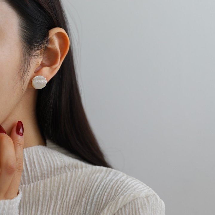 品名:E1887 담수진주 귀걸이 (티탄침) ◎※☞颜色:아이보리 ◎※☞尺寸:FREE ◎※☞材质:镀金 0% 翻译