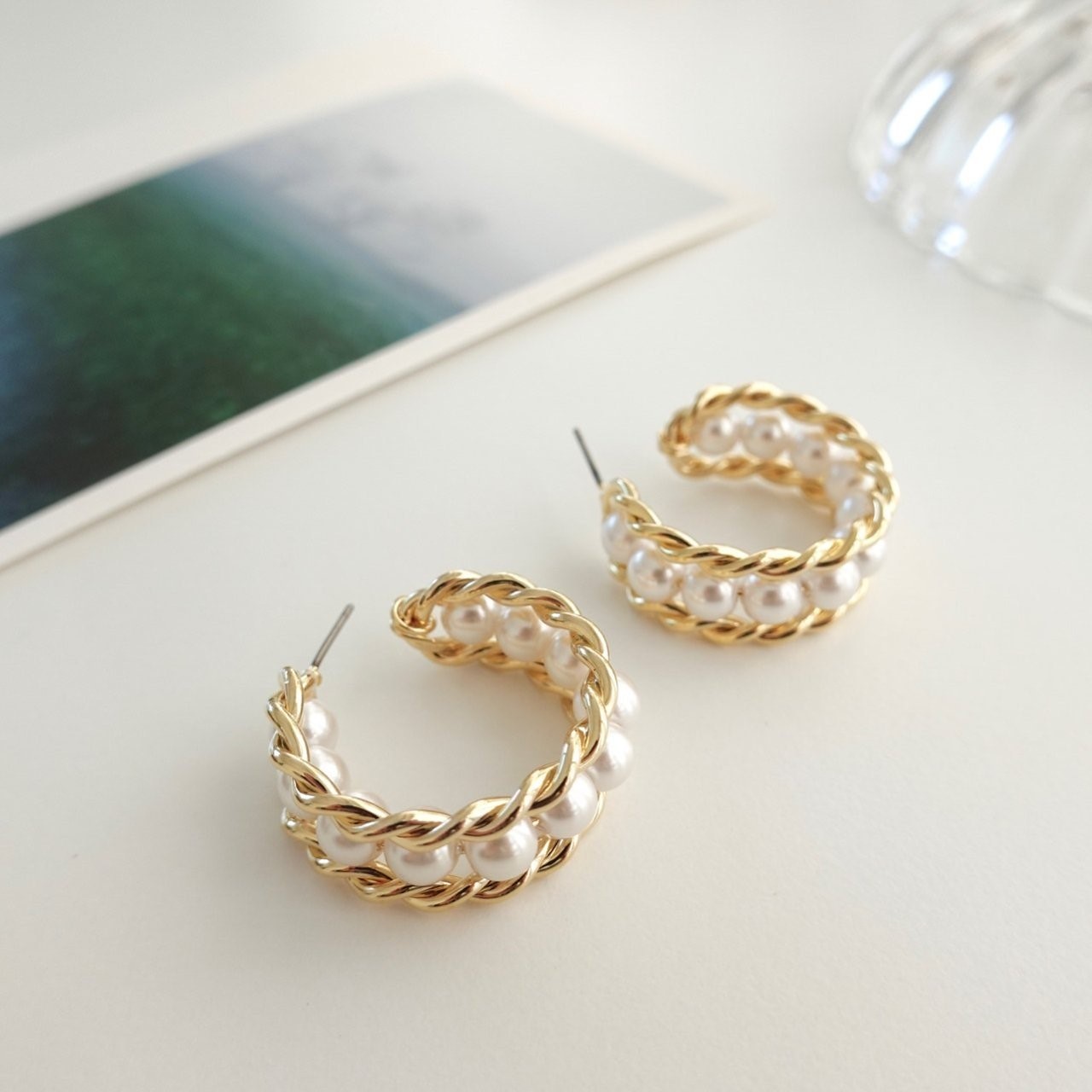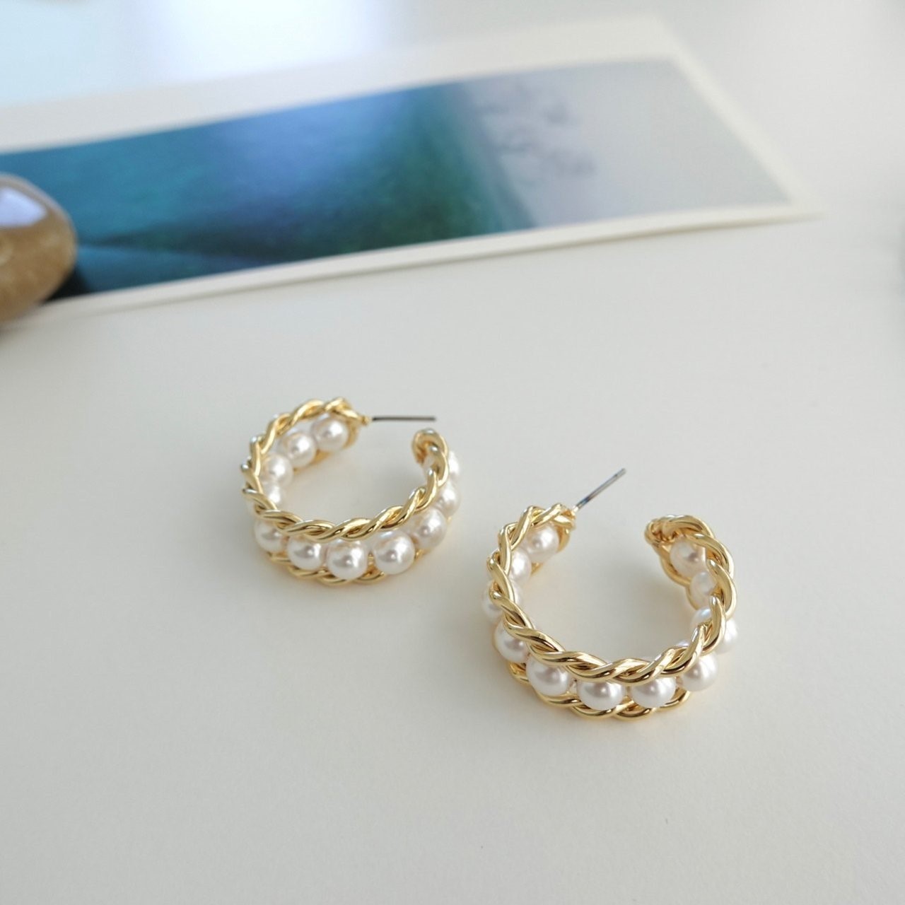 品名:E1889 진주 귀걸이 ◎※☞颜色:골드 ◎※☞尺寸:FREE ◎※☞材质:镀金 0% 翻译