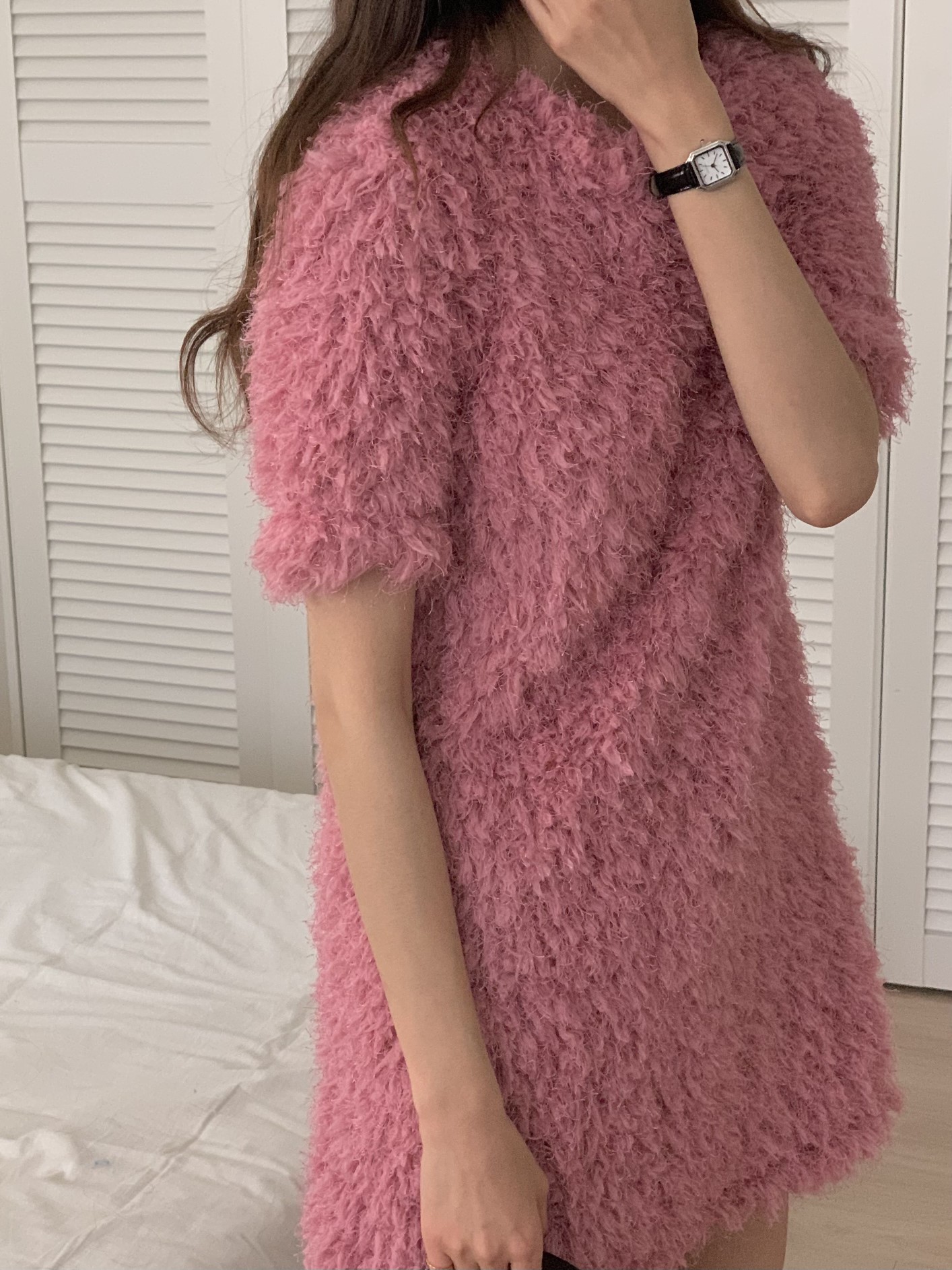 品名:D1)可爱淑女简约圆领泰迪毛短袖连衣裙 ◎※☞颜色:블랙, 아이보리, 핑크 ◎※☞尺寸:FREE ◎※☞材质:聚酯 100% ◎※☞注意事项:只能干洗,只能手洗,不能手洗,机洗,不能使用漂白剂,不能烘干,不能熨烫,不能曲折