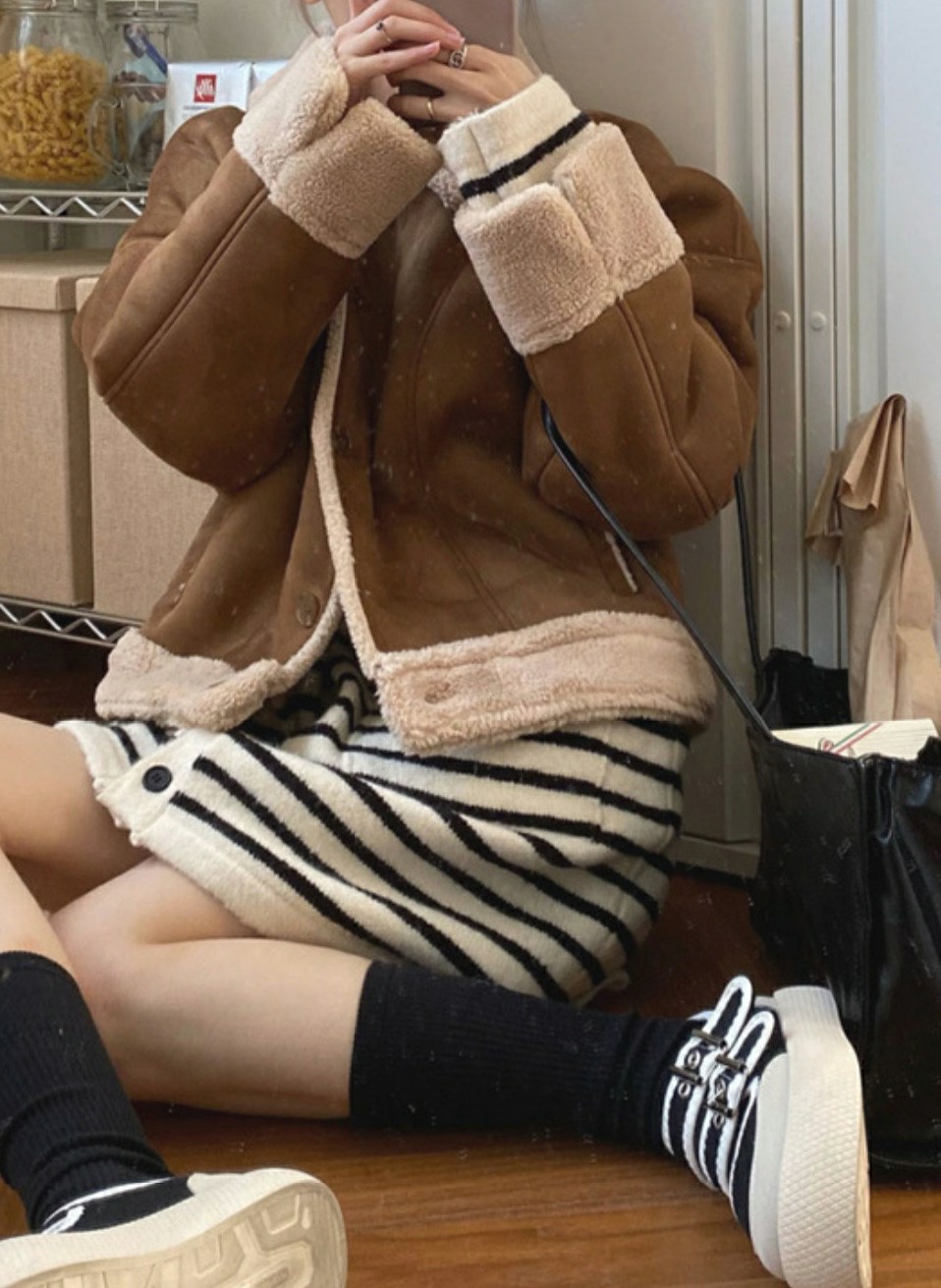 品名:링크무스탕자켓 ◎※☞颜色:모카브라운, 오렌지브라운 ◎※☞尺寸:FREE ◎※☞材质:聚酯 100% 翻译