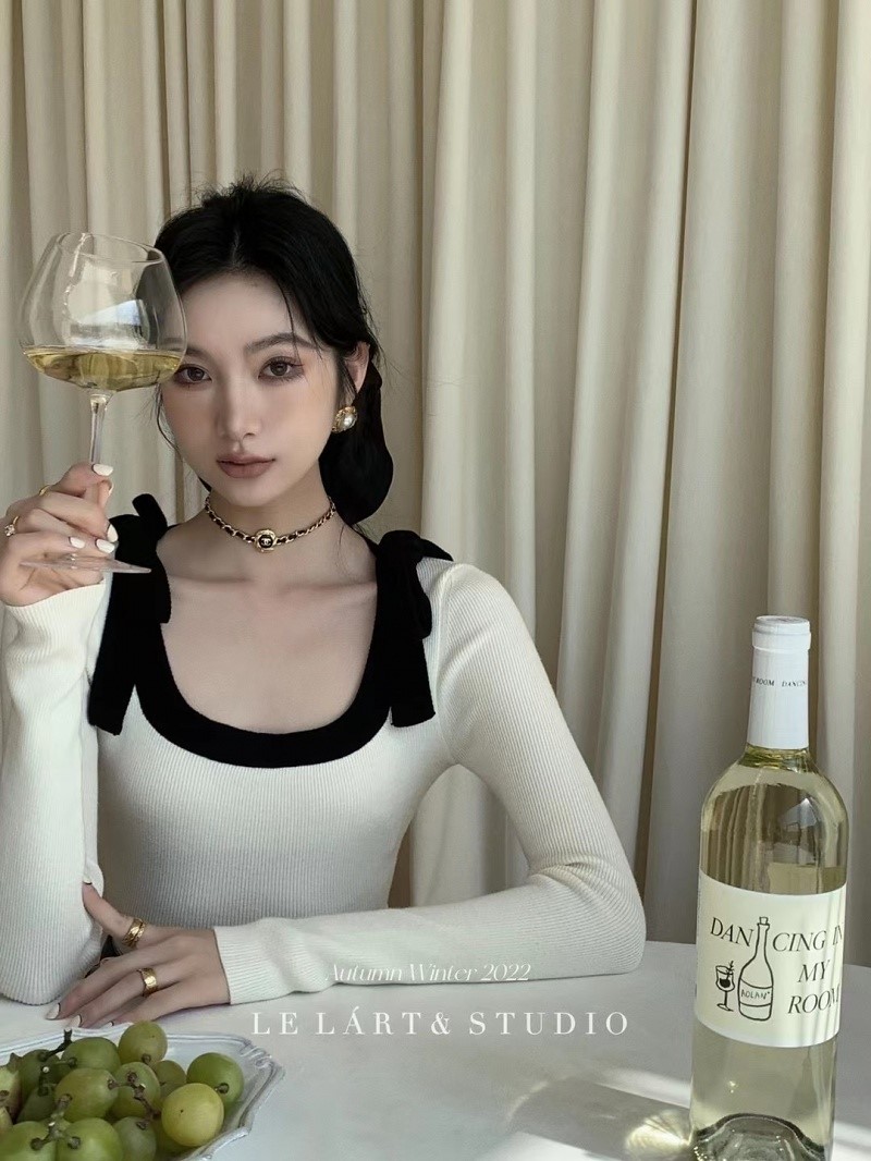 品名:양리본 배색 슬리밍 니트 knit ◎※☞颜色:블랙, 아이보리 ◎※☞尺寸:FREE ◎※☞材质:腈纶 100% 翻译