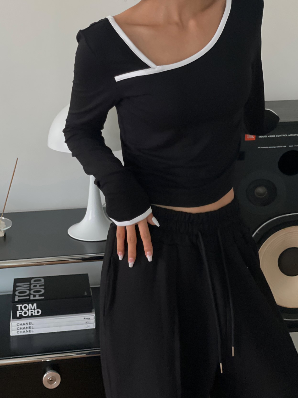 品名:모노배색티 ◎※☞颜色:블랙, 아이보리 ◎※☞尺寸:FREE ◎※☞材质:스판 4%,聚酯 62%,人造纤维 34% 翻译