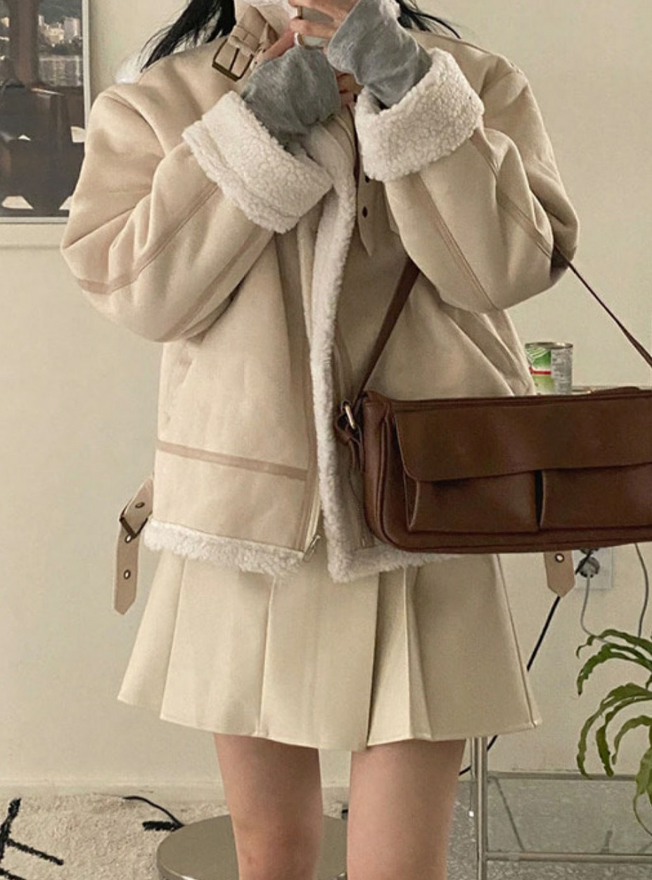 品名:로로덤블무스탕자켓 ◎※☞颜色:베이지, 브라운 ◎※☞尺寸:FREE ◎※☞材质:聚酯 100% 翻译