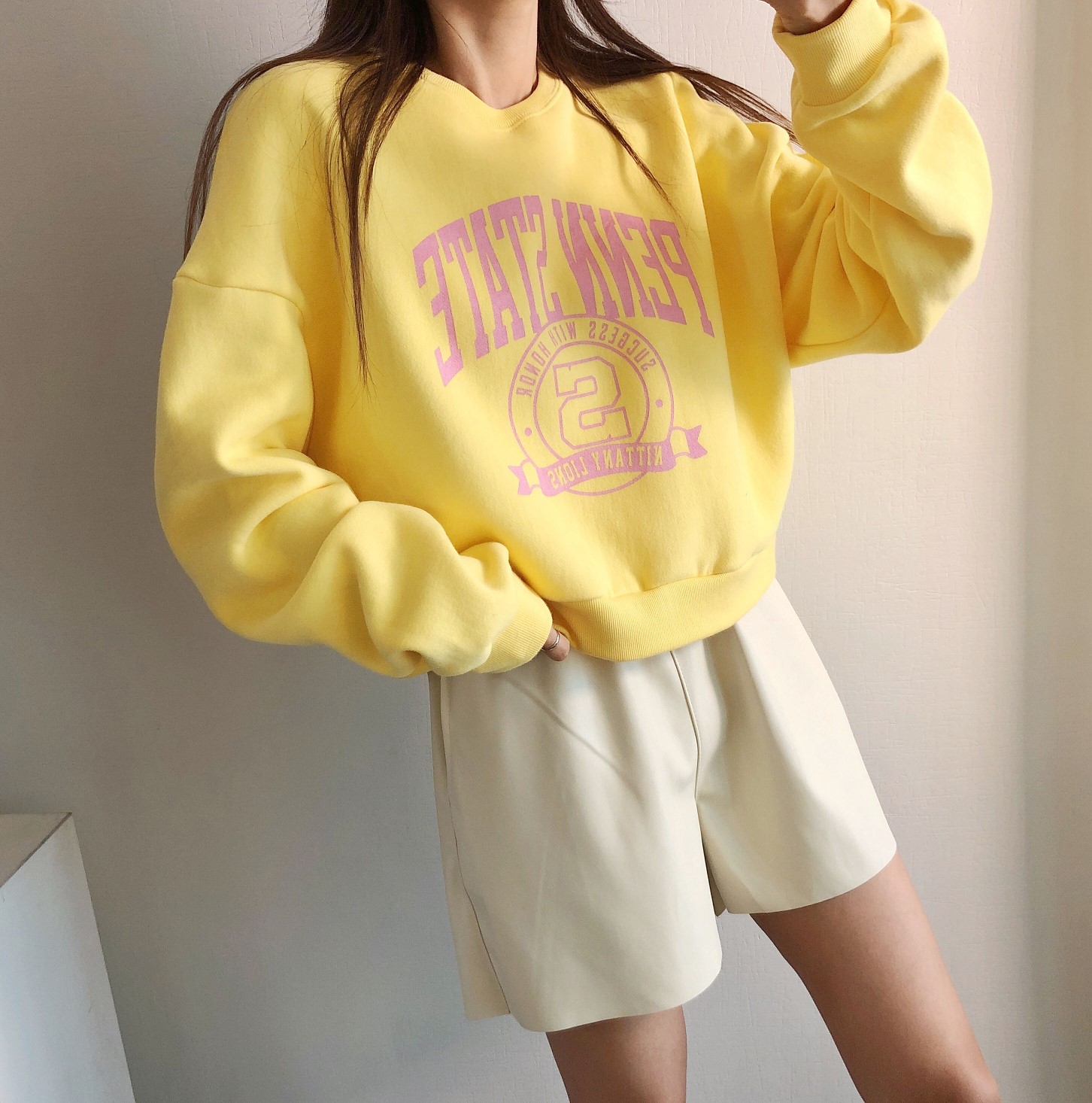 品名:스테이시 양기모 맨투맨 ◎※☞颜色:옐로우, 크림, 퍼플, 핑크 ◎※☞尺寸:FREE ◎※☞材质:纯棉 100% ◎※☞注意事项:只能干洗,只能手洗,不能手洗,机洗,不能使用漂白剂,不能烘干,不能熨烫,不能曲折