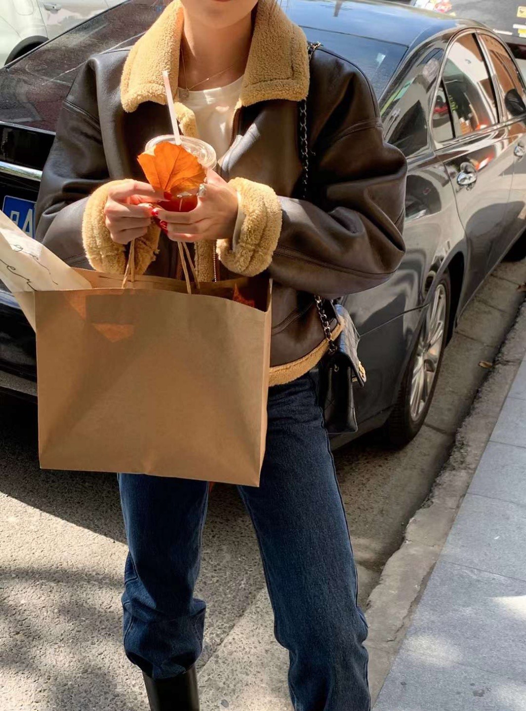 品名:라인펄무스탕 ◎※☞颜色:브라운 ◎※☞尺寸:FREE ◎※☞材质:聚酯 100% 翻译