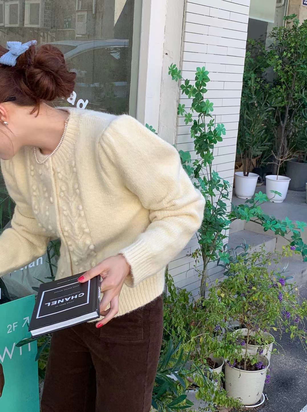 品名:럽제이가디건 ◎※☞颜色:민트, 브라운, 아이보리, 핑크 ◎※☞尺寸:FREE ◎※☞材质:腈纶 90%,羊毛 10% 翻译