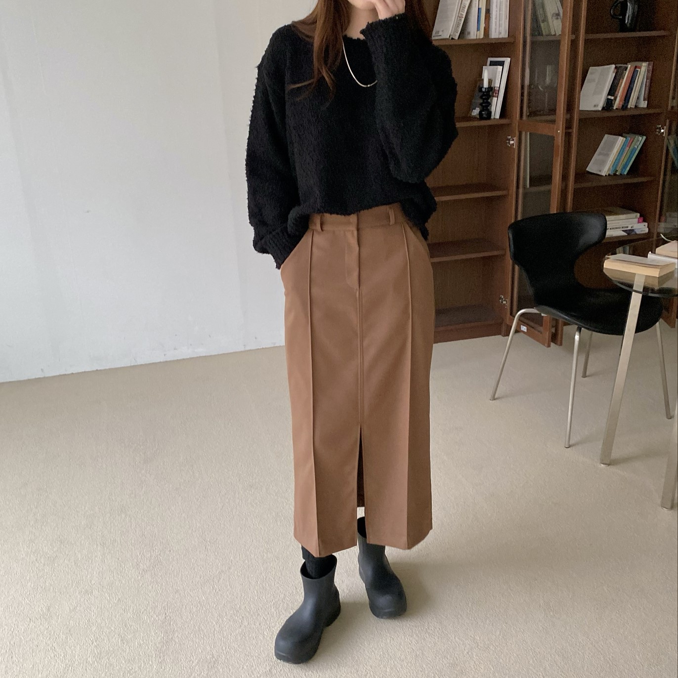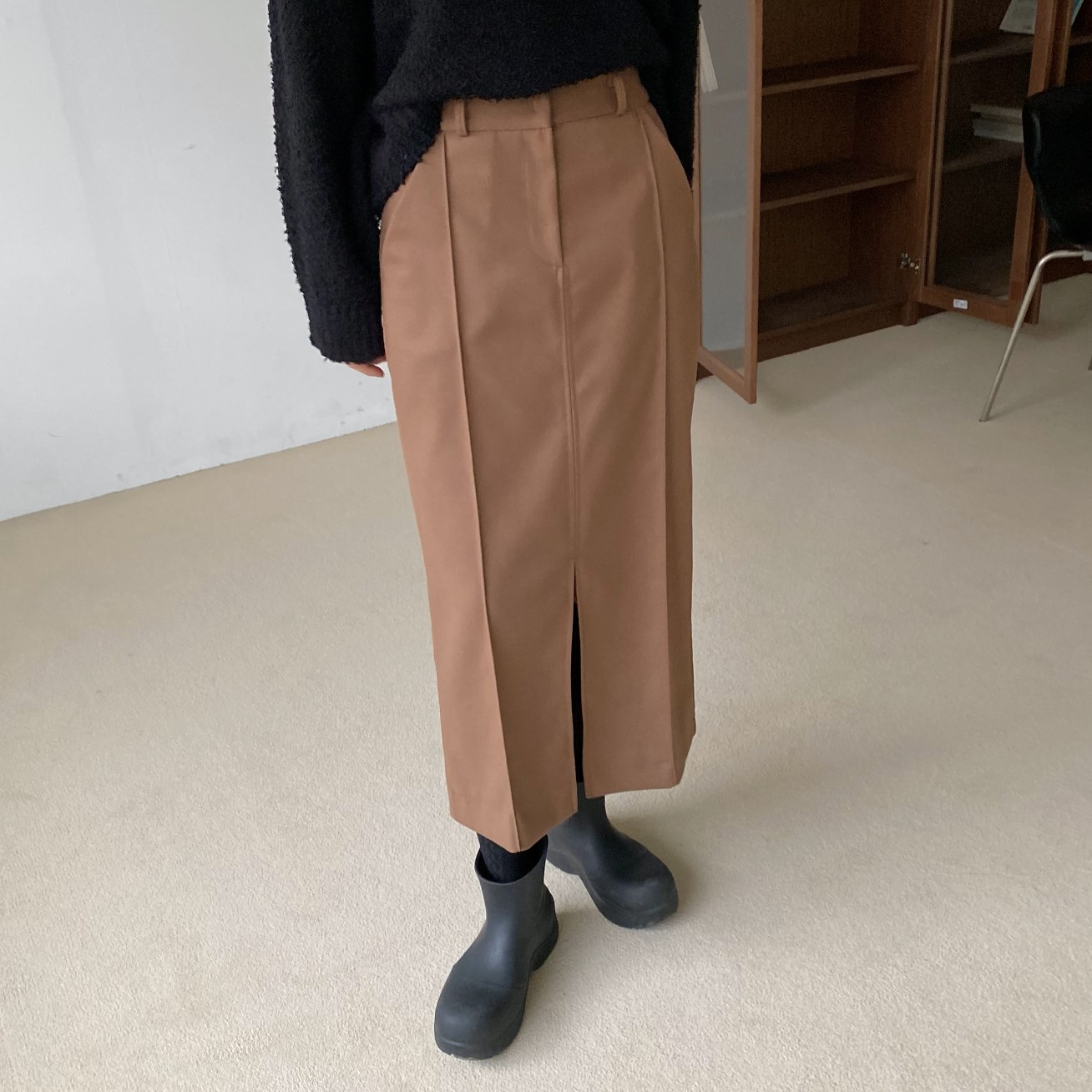 品名:모어스커트 ◎※☞颜色:브라운, 블랙, 차콜 ◎※☞尺寸:FREE ◎※☞材质:스판 2%,聚酯 80%,人造纤维 18% 翻译