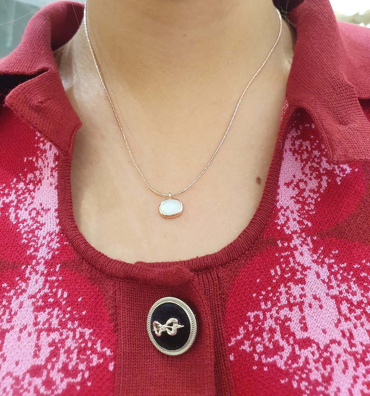 品名:은제품---옆 타원형 원석목걸이