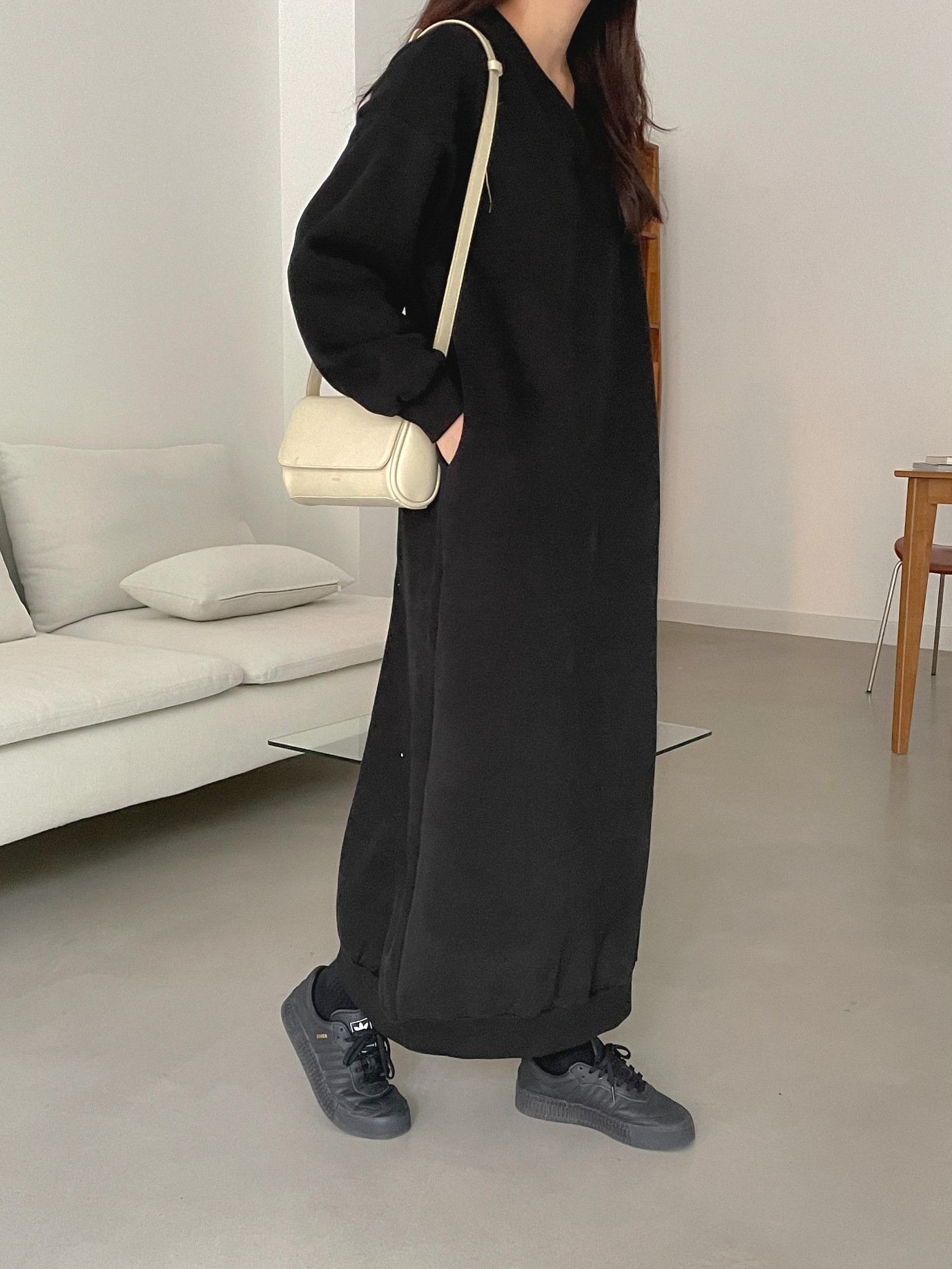 品名:브이양기모롱OPS #맥시롱 #양기모 #쭈리 #롱원피스 ◎※☞颜色:그레이, 블랙, 핑크 ◎※☞尺寸:FREE ◎※☞材质:纯棉 80%,聚酯 20% 翻译
