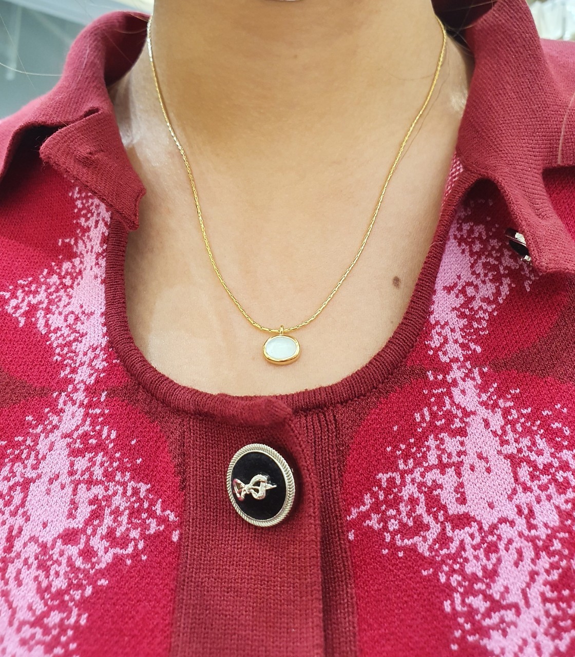 品名:은제품---옆 타원형 원석목걸이