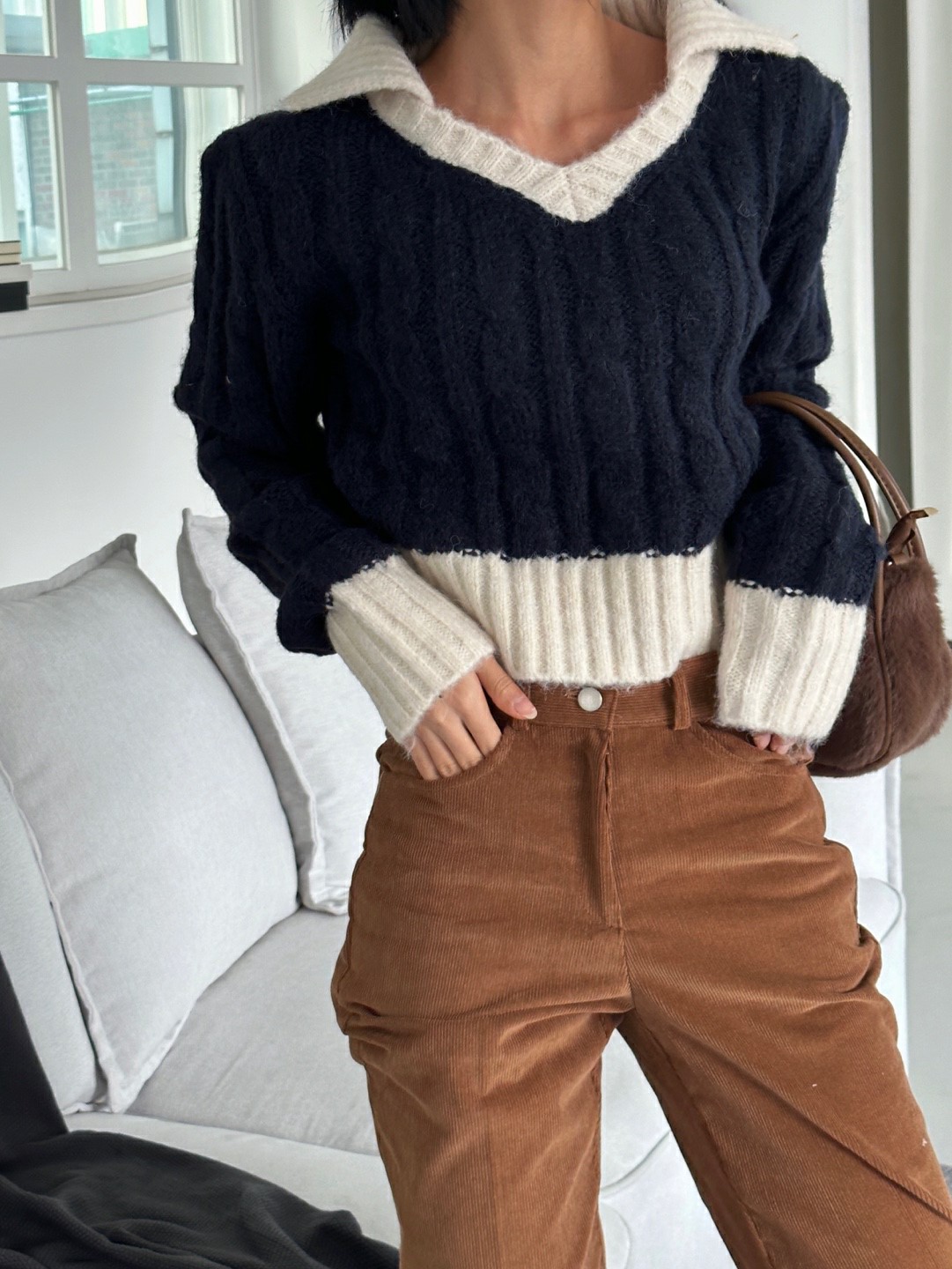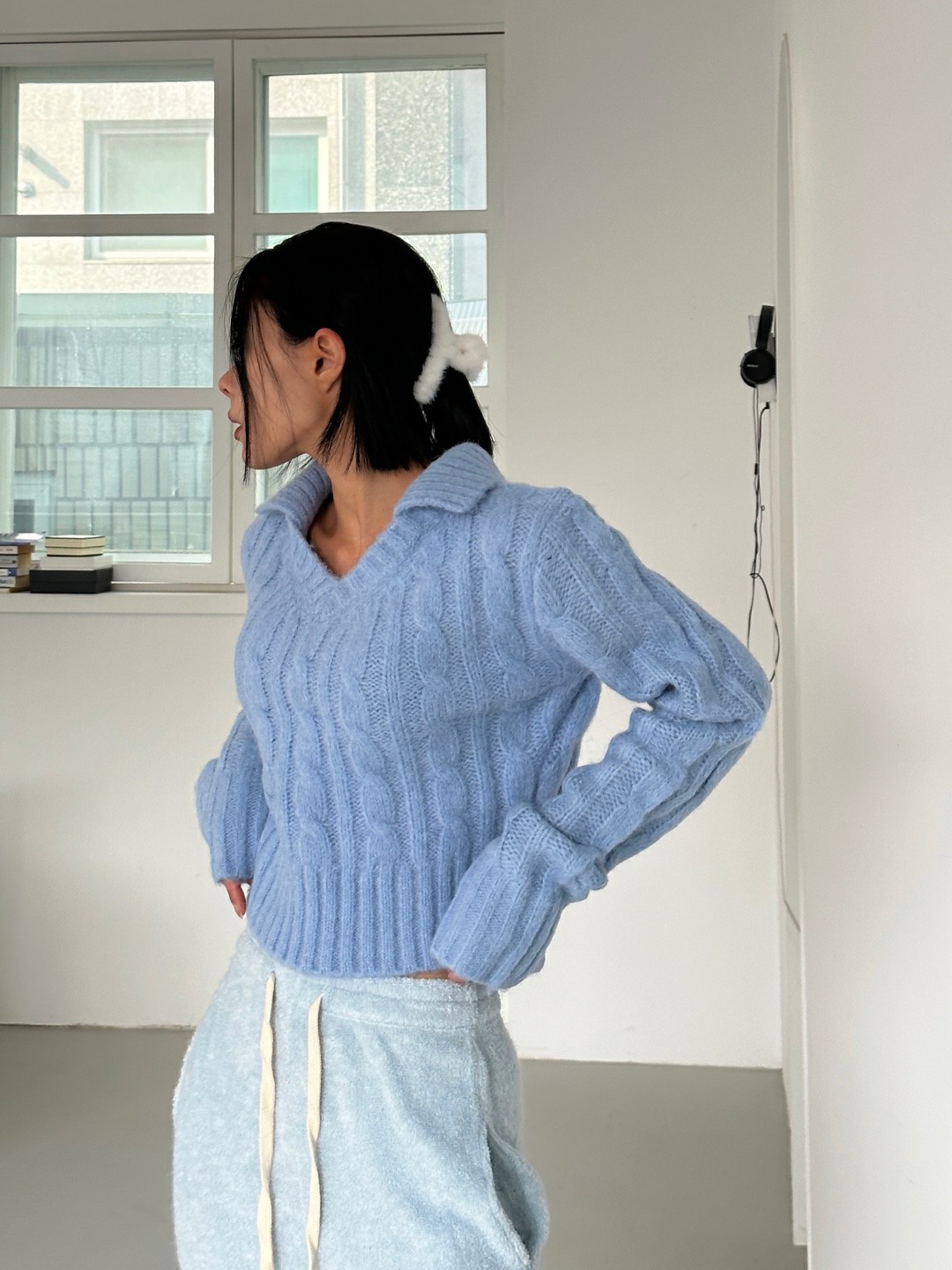 品名:버트카라 니트 ◎※☞颜色:소라, 아이, 콤비곤색, 콤비아이 ◎※☞尺寸:FREE ◎※☞材质:腈纶 70%,羊毛 30% 翻译