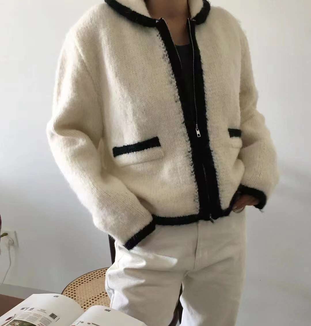 品名:츄파배색집업 ◎※☞颜色:블랙, 아이보리, 연두, 핑크 ◎※☞尺寸:FREE ◎※☞材质:腈纶 100% 翻译