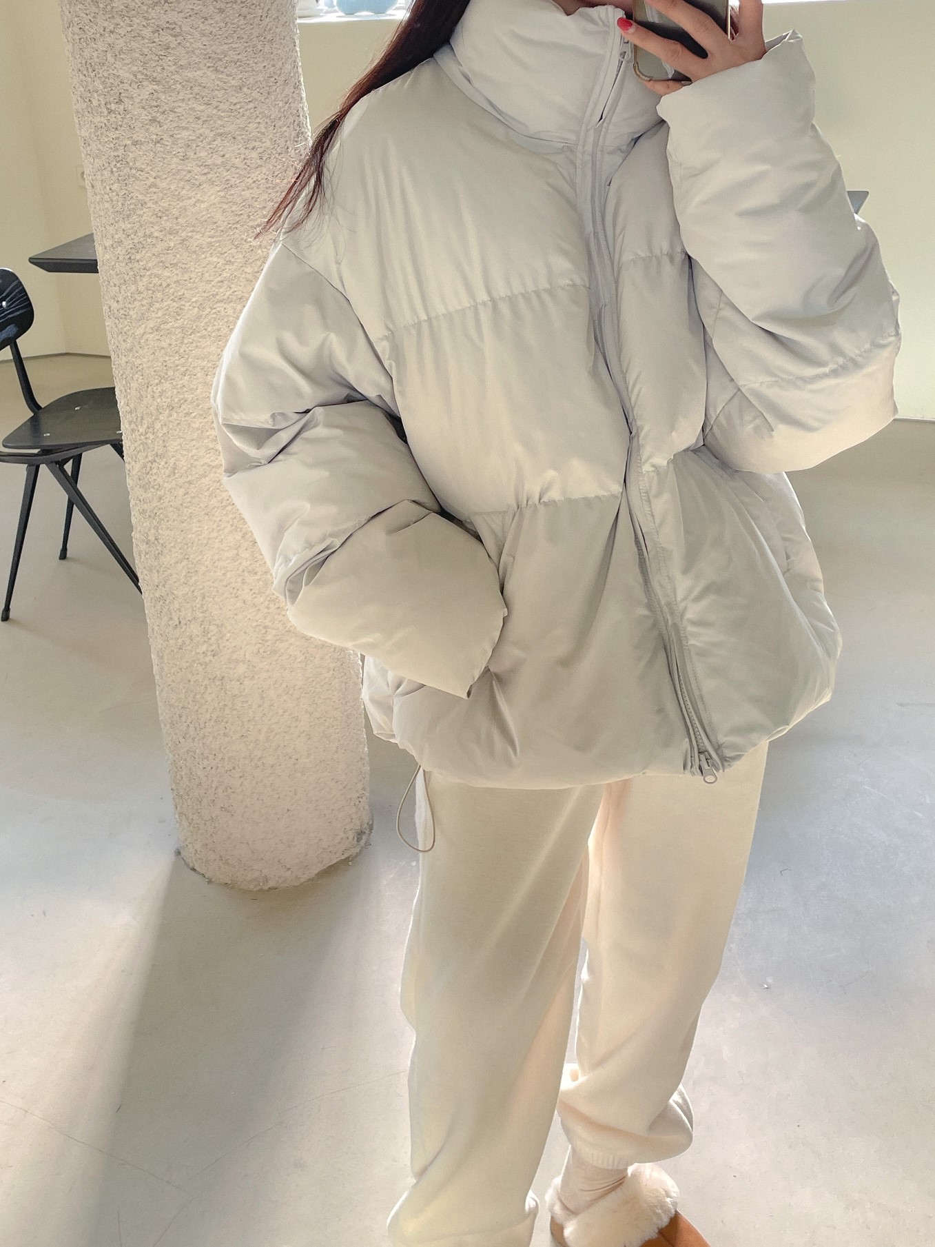 品名:남녀공용PD ◎※☞颜色:그레이, 먹색, 블랙, 소라, 아이보리, 카키 ◎※☞尺寸:FREE ◎※☞材质:羽绒棉 100% 翻译