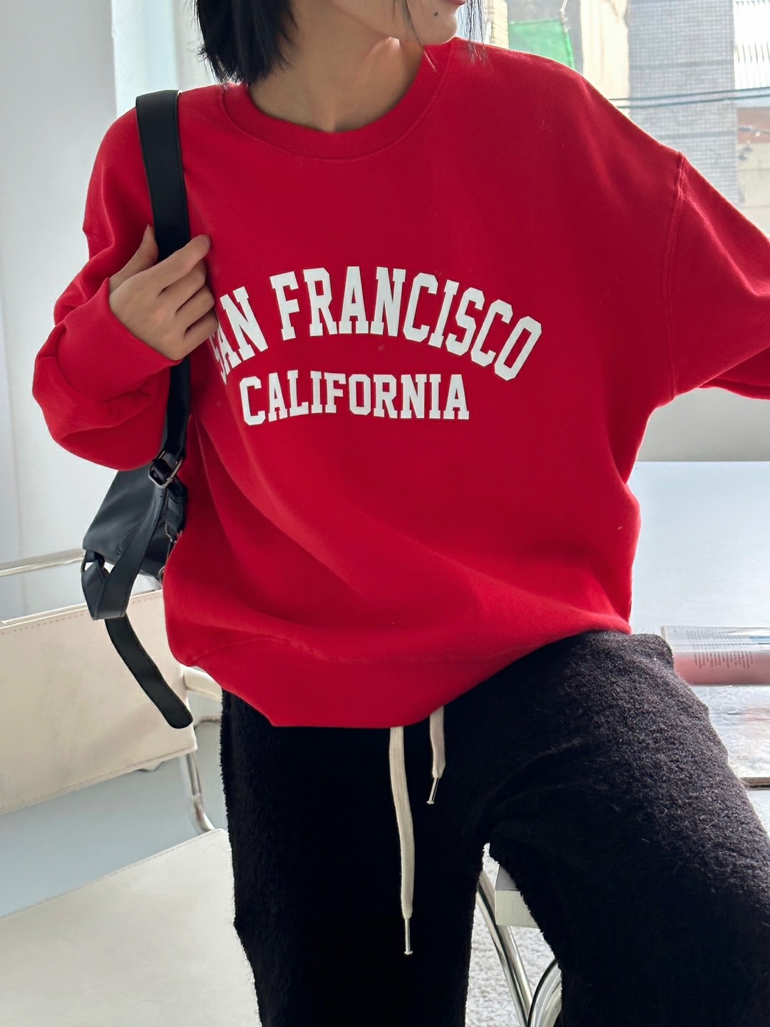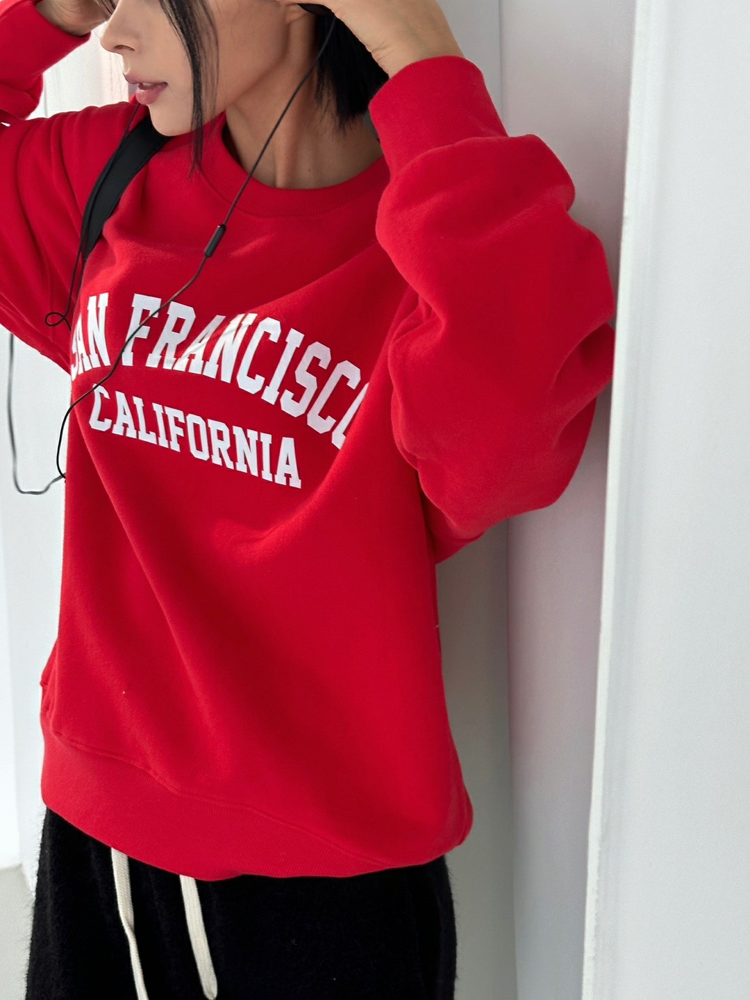 品名:캘리(필름) 맨투맨 ◎※☞颜色:레드, 멜란회, 백염, 소라 ◎※☞尺寸:FREE ◎※☞材质:纯棉 100% 翻译