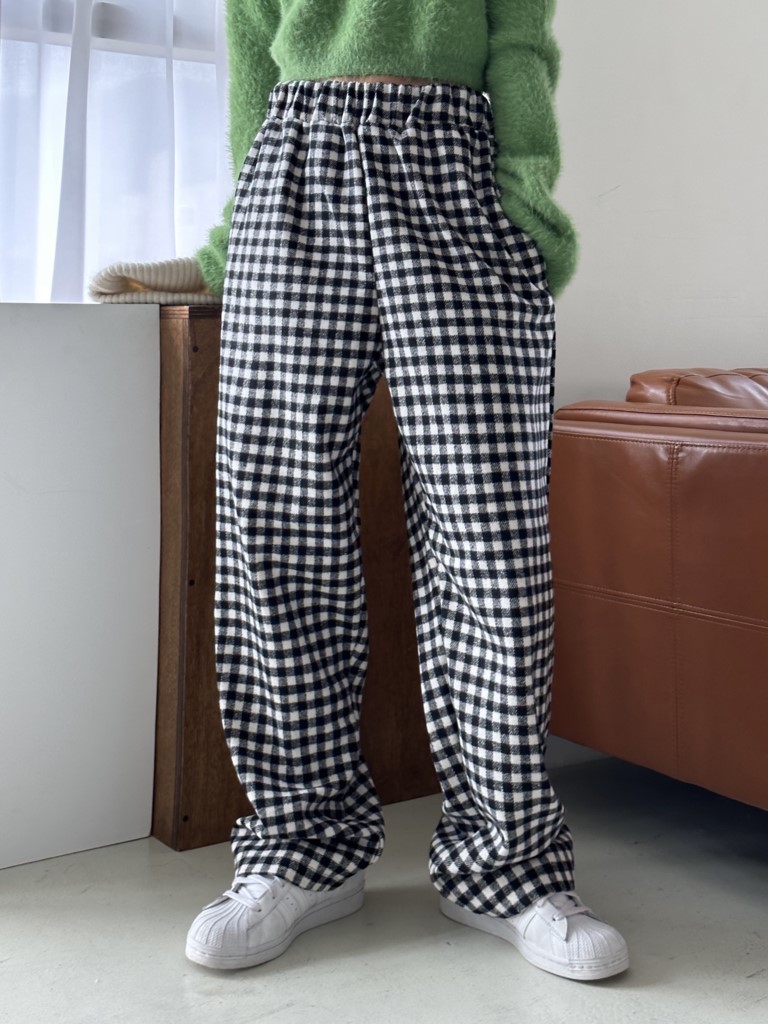 品名:큐브 체크 밴딩 PT ◎※☞颜色:브라운, 블랙 ◎※☞尺寸:FREE ◎※☞材质:聚酯 100% 翻译